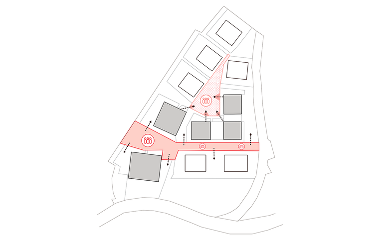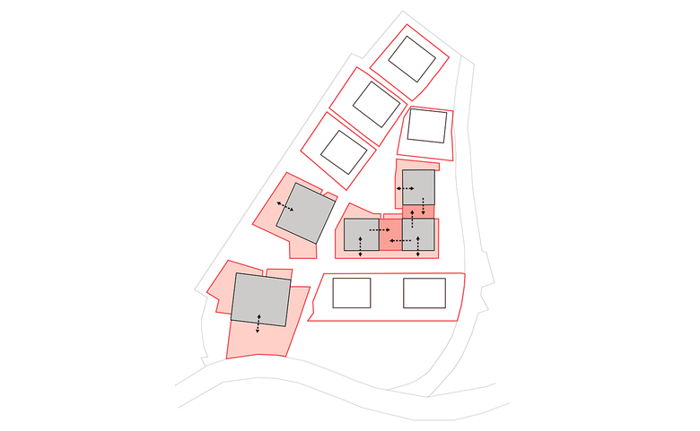 Die für Südtirol spezifische kompakte Dorfstruktur wurde von den Architekten für die Wohnanlage aufgegriffen. Die Gebäude schmiegen sich fließend an die Struktur des Ortes mit unterschiedlich gelagerten Niveaus an und vervollständigen so das Gesamtbild der Siedlung, die sich nun aus alten und neuen Elementen zusammensetzt. Die bestehende Terrassierung des Baugrundes wurde für die Gestaltung von privaten Terrassen und Gärten genutzt.