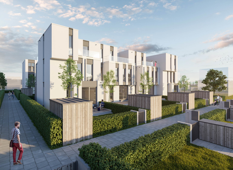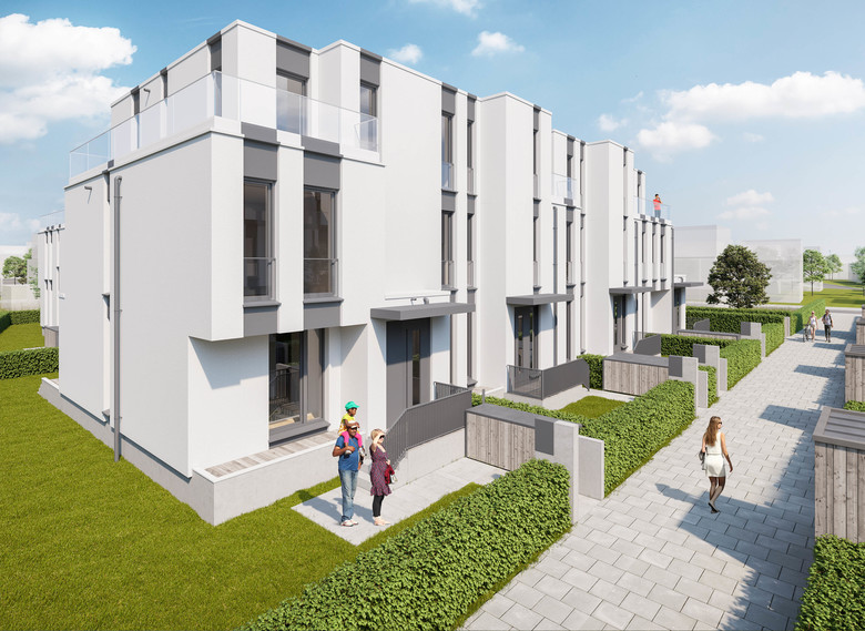 Die „Bossa Nova“ Reihenhäuser sind ein weiteres Projekt von Franken Architekten für die Lechner Group. Die vom Bossa Nova Rhythmus inspirierten Reihenhäuser bilden mit vier parallelen Reihen das Zentrum des Blocks 263, welcher sich im Südosten des Frankfurter Neubaugebietes Riedberg Westflügel befindet. Die heterogene Reihung der Häuser schafft eine effiziente Ausnutzung des Grundstücks. Jede Reihe von „Bossa Nova“ wird im Osten erschlossen, sodass Gärten und Balkone im Westen liegen.Die Häuser der Blöcke unterscheiden sich in drei Varianten, die beiden unterschiedlichen Eckgebäude und die identischen Mittelhäuser. Durch eine vertikale Gliederung des Grundstücks in vier Teile und die horizontale Verschiebung der skulpturalen Baukörper entsteht eine interessante Struktur. Diese wird über die drei oberirdischen Geschosse mit Vor- und Rücksprünge noch unterstützt. Dadurch entstehen im Freibereich individuelle Rückzugsmöglichkeiten.