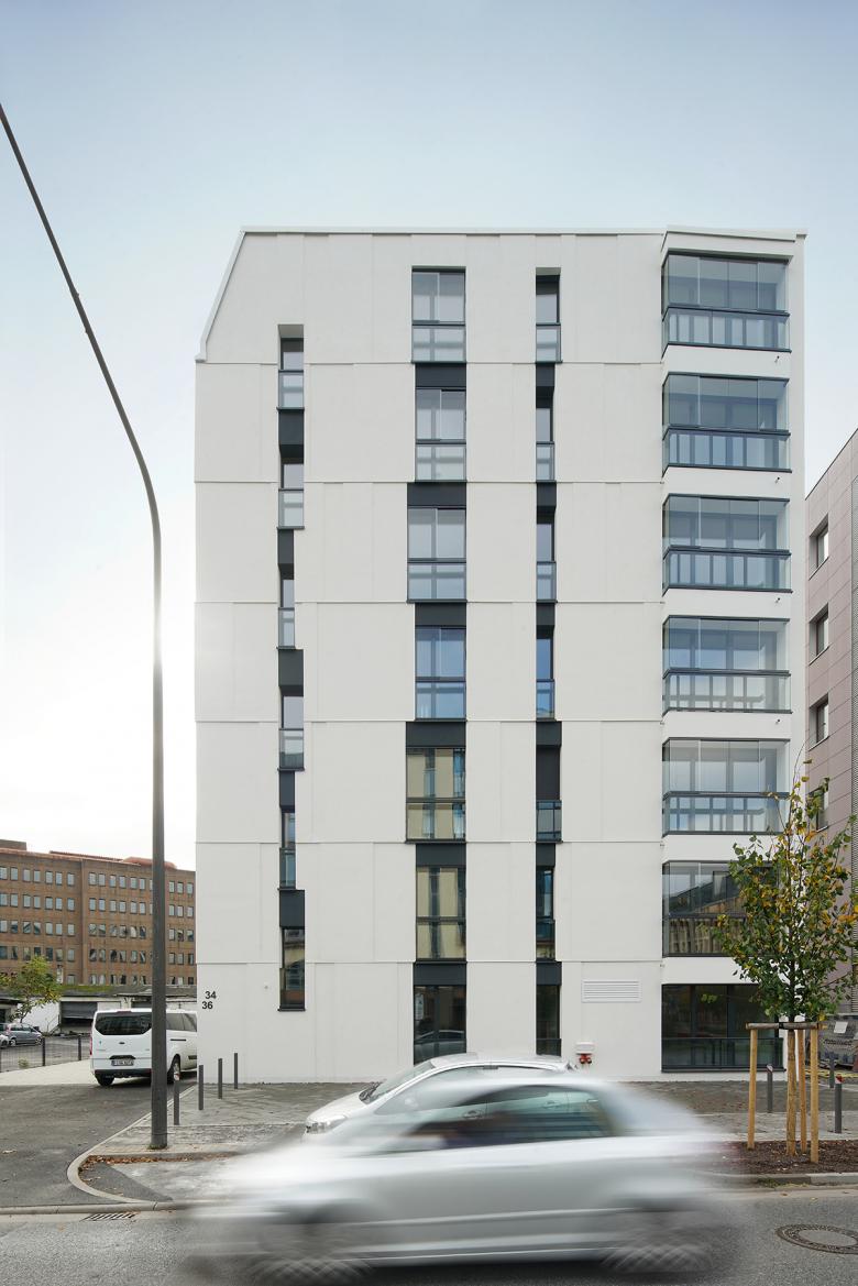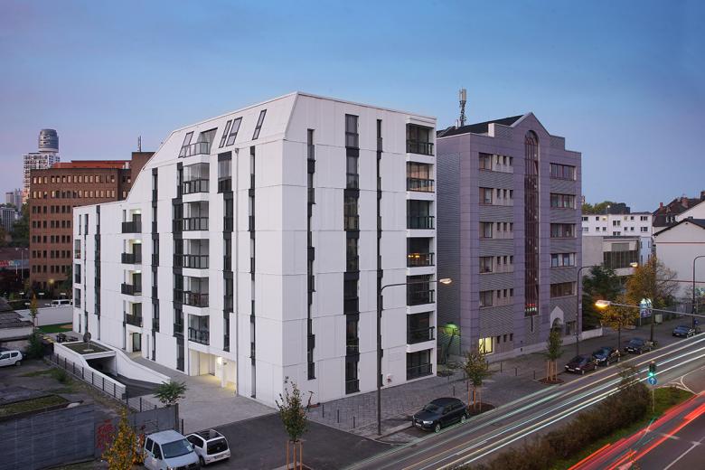 Im urbanen Deutschherrnviertel in Frankfurt Sachsenhausen hat Franken Architekten für die Lechner Group ein hochwertiges Wohngebäude mit 28 Wohnungen von 49 bis 144 m² Wohnfläche, zwei Penthouse-Wohnungen und einer Praxis bzw. Bürofläche geplant.