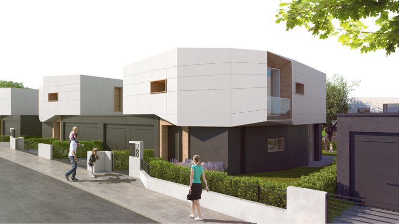 Franken Architekten wurde im Rahmen eines exklusiven Architektenwettbewerbs von der Lechner Group für den Entwurf von zwei Villentypen für die Bebauung von 20 Grundstücken, von 500 m² bis über 700 m², mit zwei unterschiedlichen Typen am Riedberg, Frankfurt jüngstem Stadtteil, beauftragt.