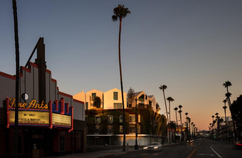“第一次来到这里,觉得洛杉矶和比弗利山都是极度现代化、极度发达,但是奢华以及所谓的高度文明下掩盖了冷漠和距离感。所有顶级豪宅在山上,像是一种社会阶层和地位的象征。住宅和城市看似在自然之中,实际上是圈地运动。城市和自然的关系变得割裂。