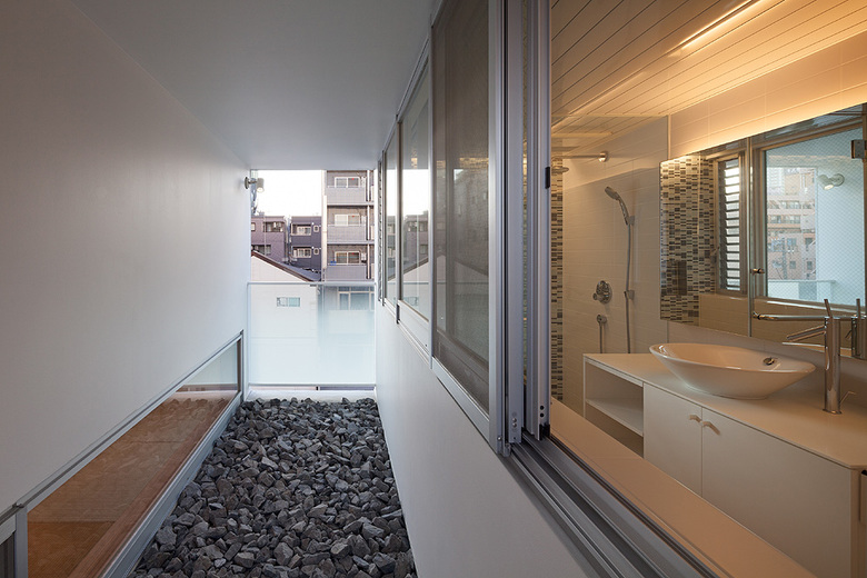 To reduce noise and vibration from the road in front of the building and to prevent flooding, which is common in this area, the lower level is a RC structure, and on top of that are three levels of residential space with a steel panel structure that allows for flexible planning and thin walls, plus a rooftop.