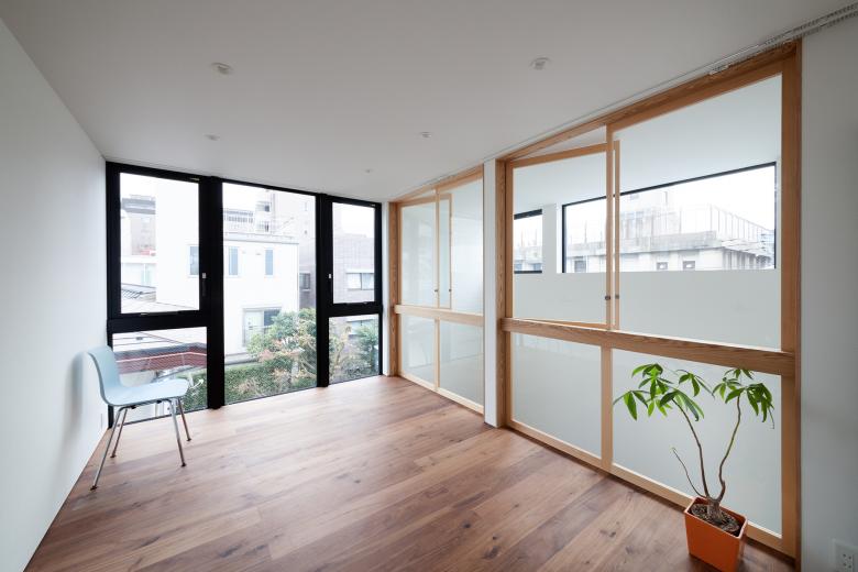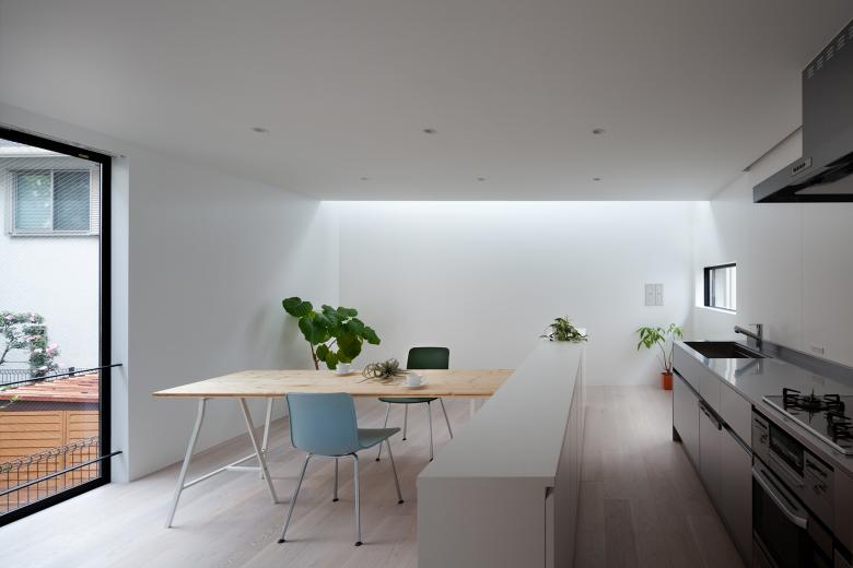 The house is divided into separate households by utilizing the difference in elevation of the site, and the relationship between the families is connected by the transparency of space and the manipulation of distance, and we considered how an independent family should be, without letting go, without losing the presence, and without being open.