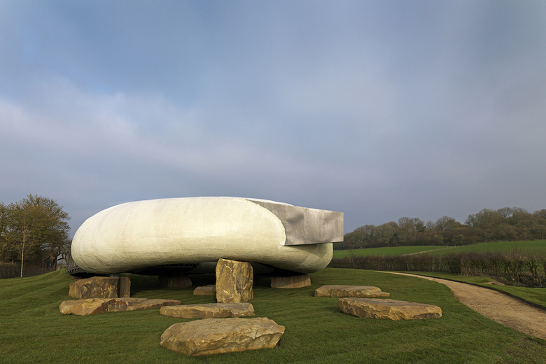 Chilean architect Smiljan Radić's design for the 2014 Serpentine Gallery Pavilion has been relocated to Hauser & Wirth's Durslade Farm in Somerset, England.