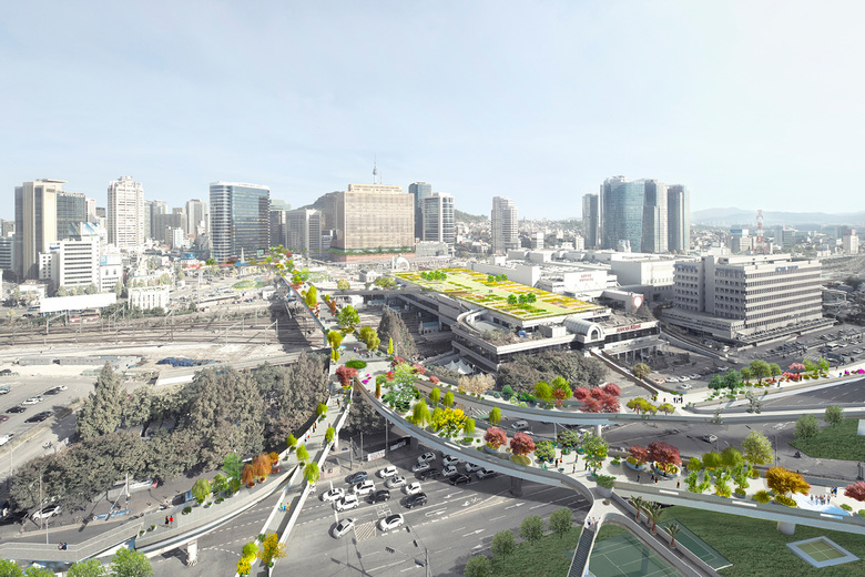 The Dutch architects have won a competition to transform an abandoned section of highway in Seoul into an elevated park with over 250 species of trees, shrubs and flowers.