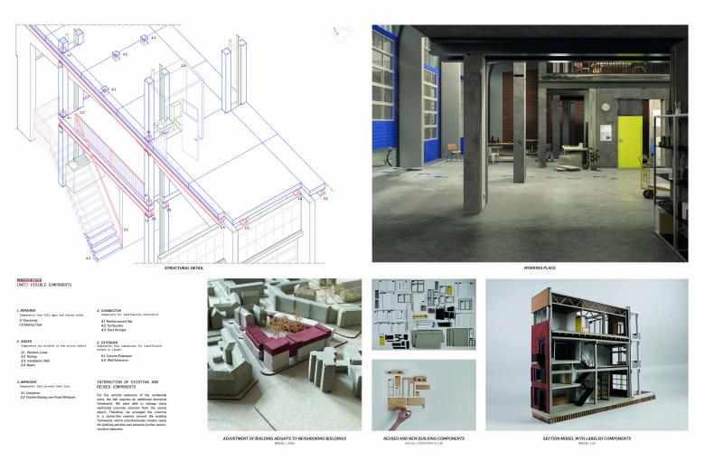 This design study shows a methodology and aesthetics for building with reused components and offers a solution for buildings that are due for demolition."