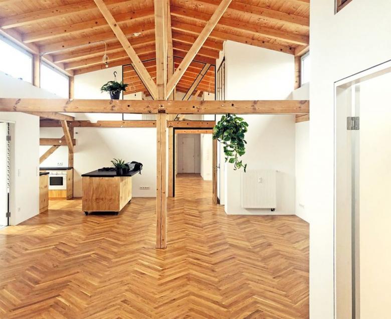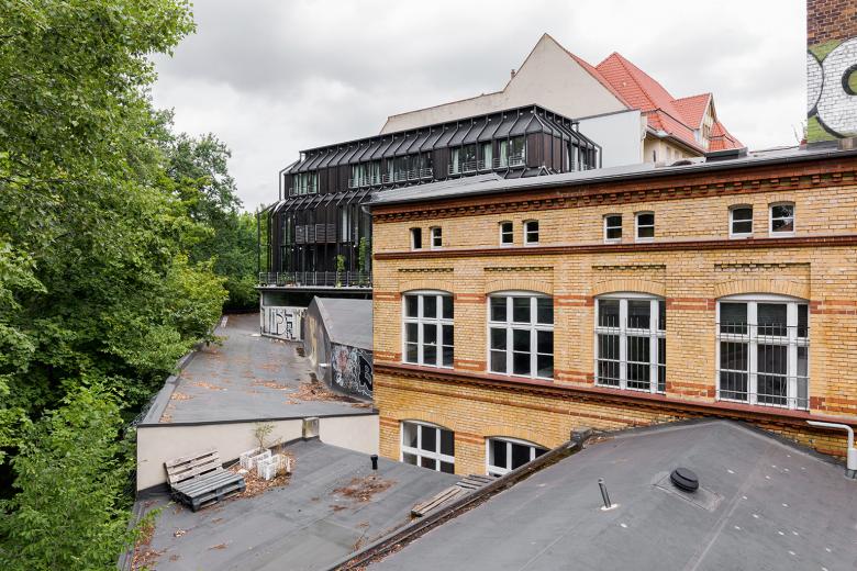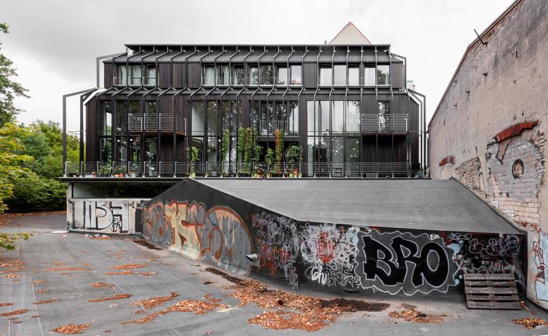 The listed former bathtub factory on Moosdorfstrasse in Berlin was converted and extended with prefabricated timber construction. In close cooperation and constant negotiation with the client, a community of practice dedicated to sharing and shaping collective ventures, large communal flats were created for up to nine adults and eleven children.