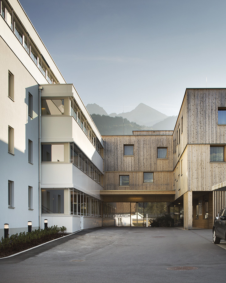 Nach dem Umzug der Bewohner des Pflegeheims Nenzing in den Neubau (Arch. Dietger Wissounig) fanden die Umbauarbeiten im Altbau statt. Ein Haus nur für junge Pflegebedürftige deckt als einer von zwei Schwerpunkten in Vorarlberg deren spezielle Bedürfnisse ab. Zwei Pflegeoasen, eine für demente Schwerstpflegebedürftige und die andere für Wachkomapatienten ergänzen das Angebot. Dieses Konzept wird hier in Vorarlberg zum ersten Mal umgesetzt.