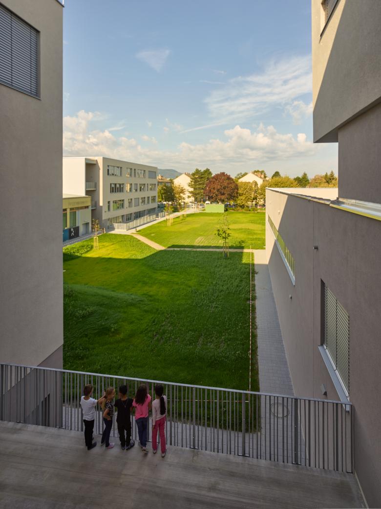 Durch Sanierung des Bestandes und einem Neubau wird die bestehende Schule um zahlreiche Bildungsräume inklusive Hort, einer Bibliothek, einem Bistro mit Speisesaal sowie einem Turnsaal ergänzt. Außerdem entsteht ein neuer Freibereich mit Grünzone, Innenhof und Sportbereich.