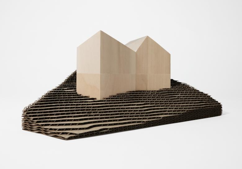 Die beiden Haushälften bieten jeweils auf drei Stockwerken Unterkunft für bis zu 10 Personen. Die Gebäudevolumetrie und die Dachgestaltung unterstreichen den zweiteiligen Charakter des Hauses.