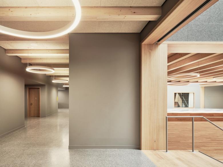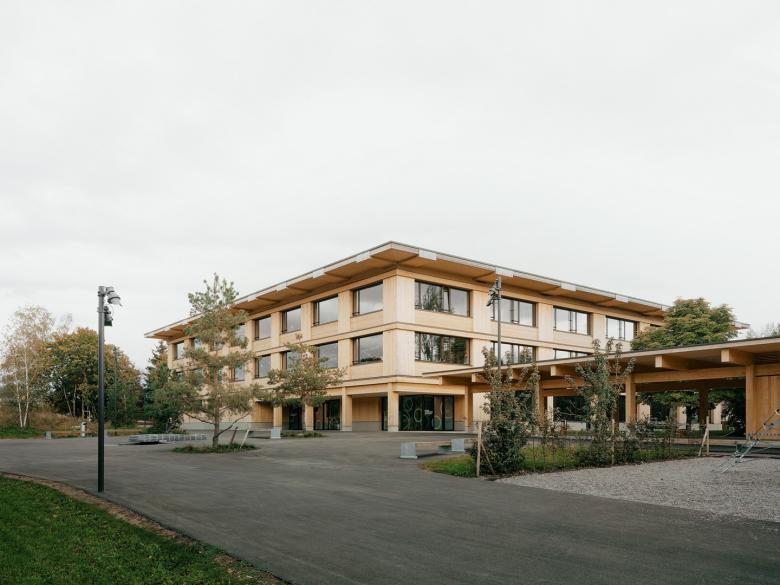 Auf dem Schulareal Weinfelden ist ein dreigeschossiger Neubau aus Holz entstanden. Im Zentrum des Schulhauses befindet sich der grosse Saal, der eine Begegnungszone für die Schüler und Lehrer darstellt. Zwei Lichthöfe führen Tageslicht bis ins Erdgeschoss und sorgen für optimale Lichtverhältnisse. In den Obergeschossen sind die Unterrichtsräume kranzförmig entlang der Fassade angeordnet. Die Schulzimmer können für verschiedene Unterrichtsformen angepasst werden. Im gesamten Schulhaus sind sichtbare Holzelemente eingebaut, die für eine angenehme Atmosphäre sorgen. Das Gebäude ist gemäss dem Minergie-P Standard erstellt.