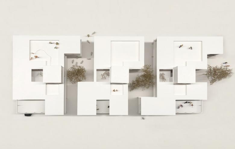 Auf der Dachlandschaft über dem Wohngeschoss befinden sich private Terrassen und Dachgärten.