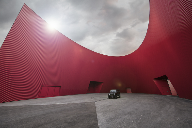 Das Rückgrat bildet die innere Erschließungsachse – raumhohe verglaste Öffnungen leiten durch die Abfolge der Hallen – Rot, Schwarz, Rot, Schwarz. So einprägsam die elliptischen, hyperbolischen Einschnitte an den beiden Längsflanken sind, so eindringlich ist auch die Farbgebung des Riesen - satte, reine Farben ohne Abschattierungen wie in der Heraldik.