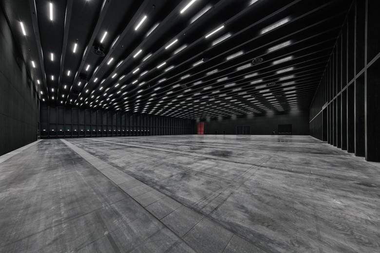 Marte Marte Architekten überzeugten 2014 beim geladenen Wettbewerb mit einem herausragenden Wurf, geprägt von Wucht und Zurückhaltung. Die kraftvolle Geste der emblematischen Großform - vier Hallen werden in einem gigantischen, monolithischen Baukörper von 170 m Länge, fast 70 m Breite und 16,50 m Höhe vereint - ordnet das bestehende Konglomerat, lädt es mit Energie neu auf.