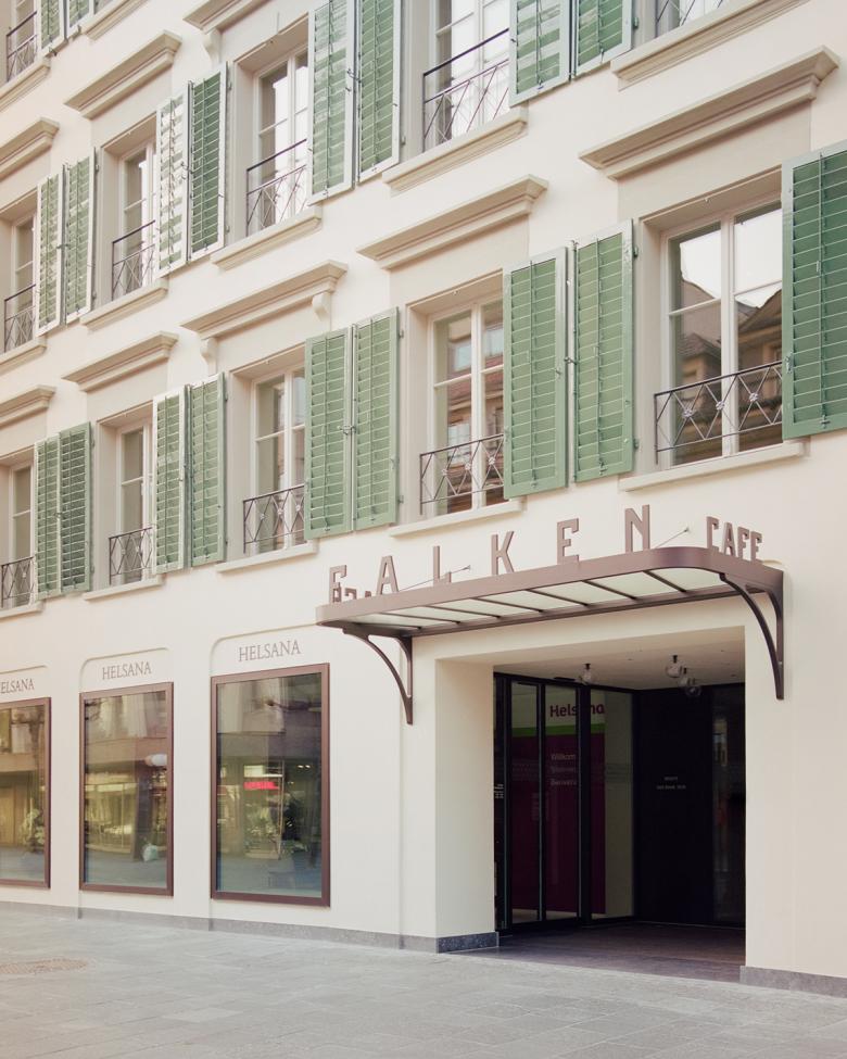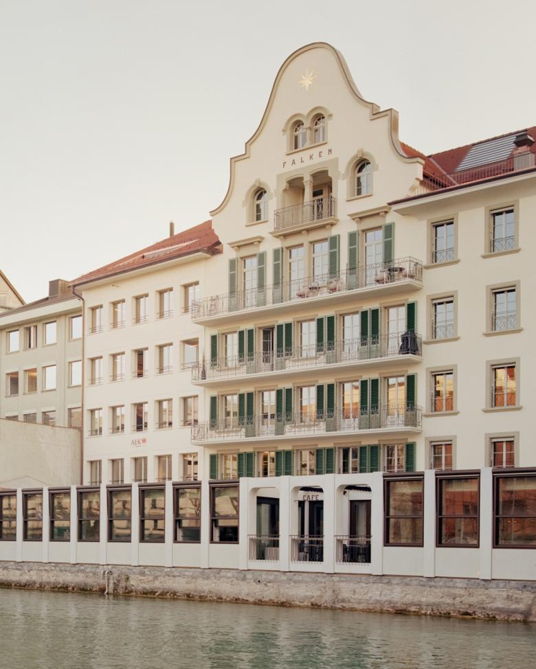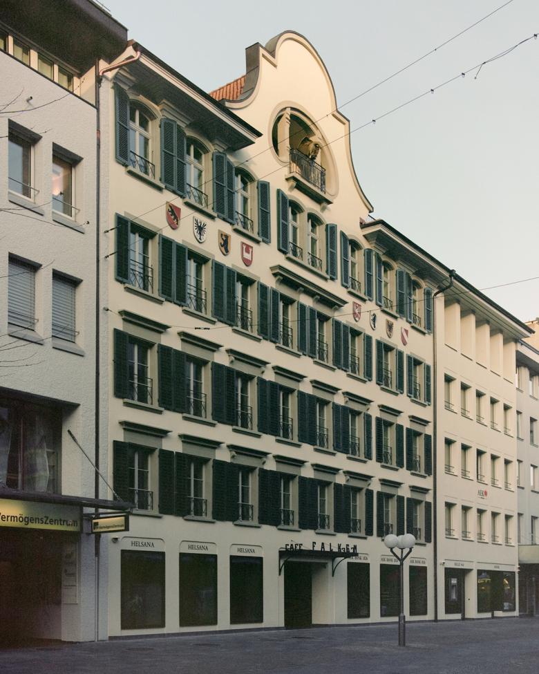 Das denkmalgeschützte Jugendstilgebäude aus dem Jahre 1835 wird umfassend saniert und mit einem pavillonartigen Annexbau – entlang der Aare – ergänzt. Der nach dem Umbau wieder erlebbare Lichthof wird zum zentralen Element des neuen Falken, welcher die diversen Nutzungen attraktiv verbindet. Im Erdgeschoss befinden sich die repräsentativen Räume der AEK Bank 1826, welche mit einer Boutique und aareseitig mit einem Café ergänzt werden. In den oberen Geschossen werden Büros und attraktive Altstadtwohnungen organisiert.