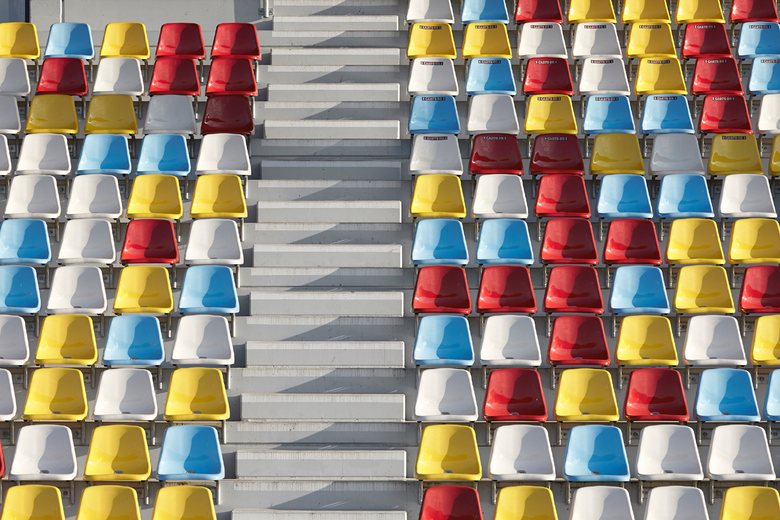 Die Tribüne bedient sich der Geste des “Bügels“ - Boden, Wand und Decke werden Eins, geraten in Fluss und verleihen dem Gebäude eine Eigendynamik, die durch die Länge des Gebäudes nochmals verstärkt werden konnte.