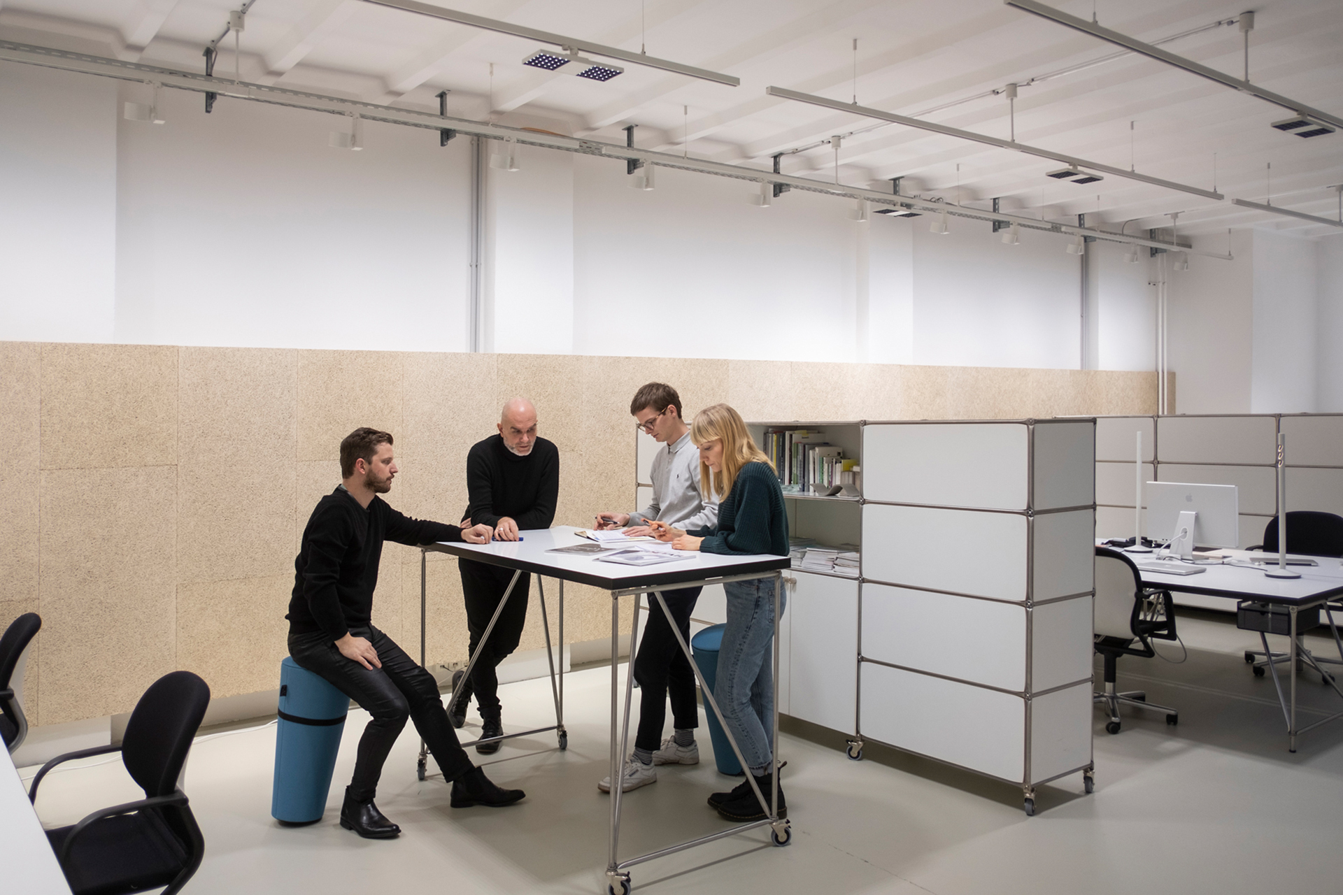 Flexibilität und Wandlungsfähigkeit bestimmen den Alltag von Kommunikationsagenturen. Diese Eigenschaften erwartete Mai auch von der neuen Lichtlösung. Mit der ERCO Stromschiene als Infrastruktur ist die Installation von Leuchten nicht nur schnell und einfach, die Leuchtenanordnung lässt sich darüber hinaus variabel auf den Bürogrundriss anpassen. Mit nur wenigen Handgriffen können die Jilly Downlights entsprechend der Arbeitsplatzausrichtung in der Stromschiene neu positioniert und fixiert werden. Auch nachträgliche Änderungen sind dabei kein Problem und können ohne Vorkenntnisse vorgenommen werden, wie der kürzlich durchgeführte Umbau des Büros bestätigte. Weitere Arbeitsplätze, ein Stehbereich und eine geänderte Sitzordnung stellten neue Anforderungen an das Licht. Das Besondere: Nicht das Setting des Mobiliars musste sich nach der Beleuchtung richten, sondern die Leuchten wurden entsprechend der veränderten Nutzung einfach umgesteckt – werkzeuglos und ohne neue Verkabelung. Selbst bei einem Umzug in andere Räumlichkeiten kann die gesamte Beleuchtung mitgenommen werden. Damit erfüllt Jilly alle Anforderungen, die an eine wirtschaftliche und langfristige Lichtlösung für agile Arbeitswelten gestellt werden.