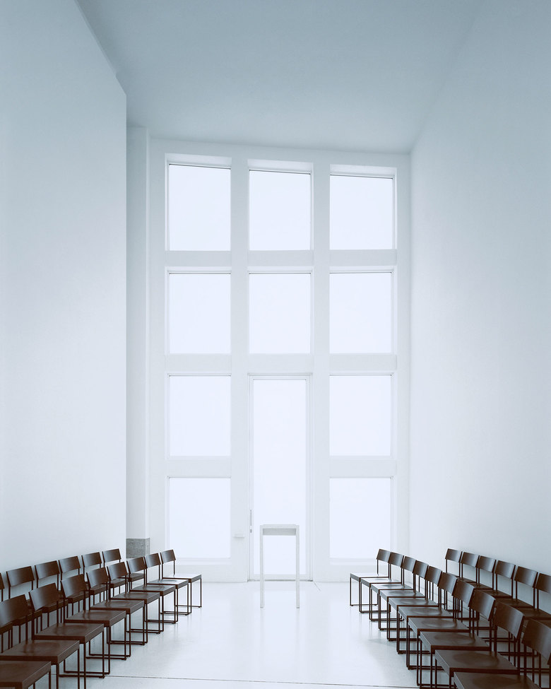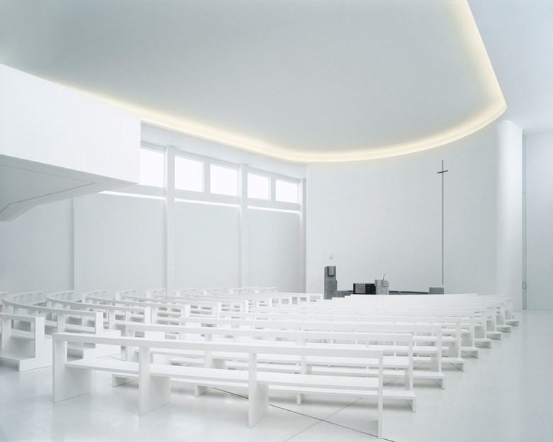 Das räumliche Gefüge bleibt durch Fugen ablesbar, aber der Raum wird durch ein alles verbindendes Weiß zu einem Ganzen zusammengezogen, das die Idee des Transzendenten, Immateriellen als Raum aus Licht transportiert. Der Boden ist aus weißem Terrazzo, glatt verputz und mineralisch gestrichen die Wände, die Bänke wurden aus Holzwerkstoff gefertigt und weiß lackiert. Der Altar, gestaltet von Wolfgang Eckert, wurde am 16. Juni 2007 geweiht. Der Künstler betont den Neuanfang, der mit dem Umbau der Kirche verbunden ist. Auch das lässt sich theologisch interpretieren: Der Glaube impliziert die Bereitschaft zum Neuanfang. Uns fällt freilich nur zu, über den architektonischen zu sprechen. Der ist gelungen.