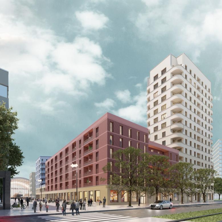 Für die „Parkstadt Süd“ hat O&O Baukunst einen robusten Stadtbaukörper mit klaren öffentlichen und privaten Außenräumen entworfen. Es wird eine Blockstruktur geben mit Gassen, Boulevards und gut proportionierten Plätzen. Der Entwurf ist geprägt von urbaner Dichte und ermöglicht einen ausgewogenen Nutzungsmix aus Wohnen, Arbeiten, Kultur und sozialer Infrastruktur. Das Herz der „Parkstadt Süd“ wird das Marktquartier um die denkmalgeschützte Großmarkthalle sein.