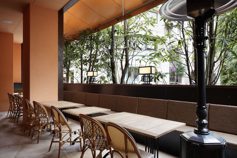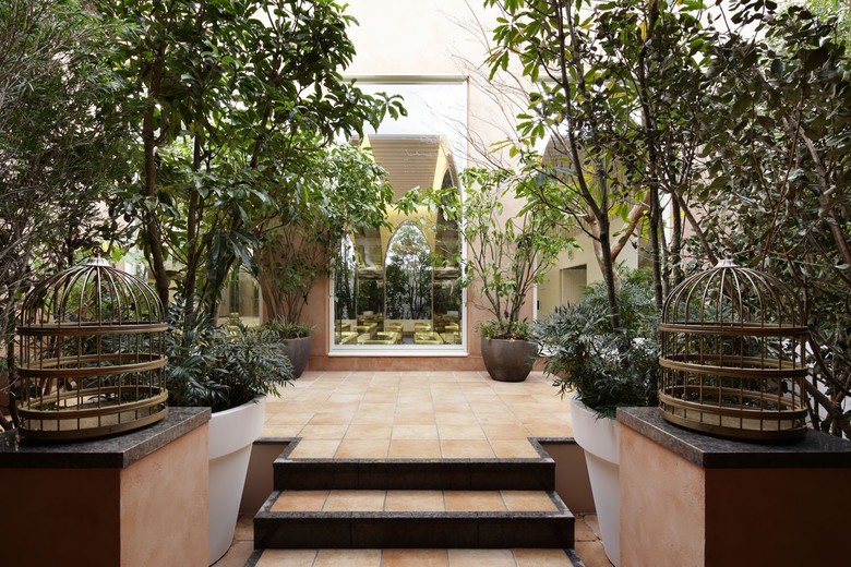 Complementant l'estil de la seva instal·lació de temàtica internacional que ofereix música, art i vi de diferents parts del món, el jardí de la façana alberga plantes originàries de diferents països, com palmeres de 12 metres, agaves i buganvillas. Al jardí de la façana d'un restaurant, hem proporcionat una gran quantitat de vegetació en un espai limitat. Un túnel d'arbres i un recorregut en forma de rotonda fan que la gent senti l'espai més gran del que és. Una font d'aigua també dona moviment a l'escena.