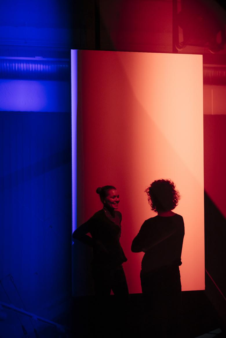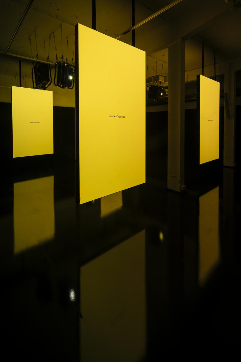 The spatial set-up of the exhibition is specifically arranged to emphasize this dual nature of transformation. Whereas in the concept phase, the visual world of the final result only exists in the imagination; in the final design, the ideas and thoughts leading towards it can only be guessed. The positioning and orientation of the screens encodes the space into two segments of experience, which are usually merely conceptually connected, but are here bound together physically, by stories made visual.