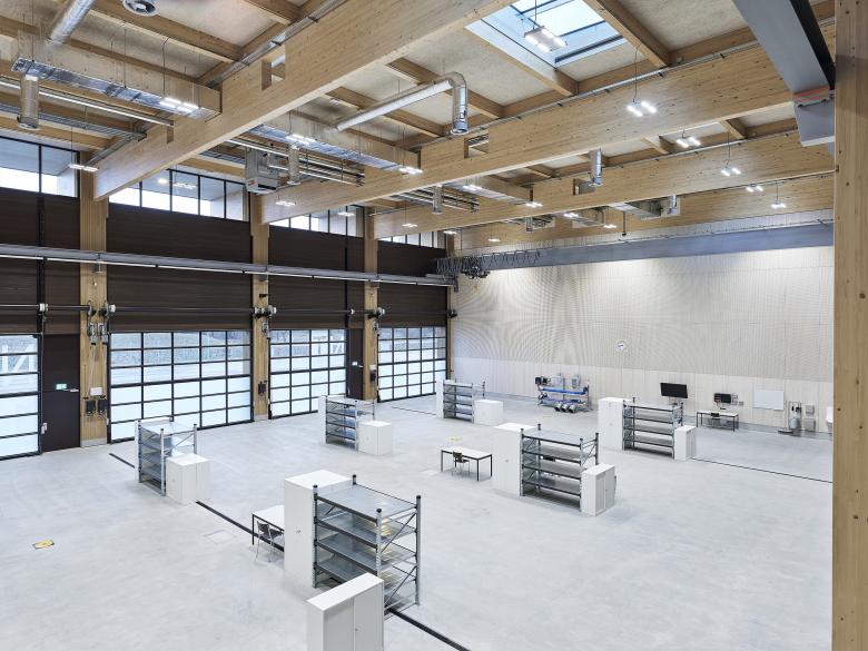 Über der Bodenplatte ist das ganze Bauwerk in kostengünstiger Holz- (System-) Bauweise erstellt. Das Gebäude ist Minergie zertifiziert und die Dächer sind vollflächig mit einer PV-Anlage eingedeckt.