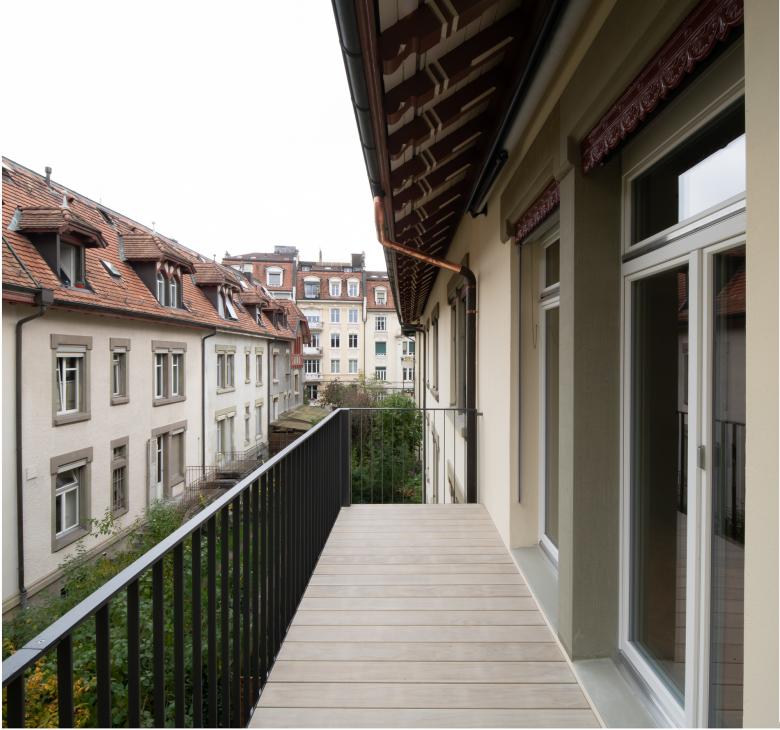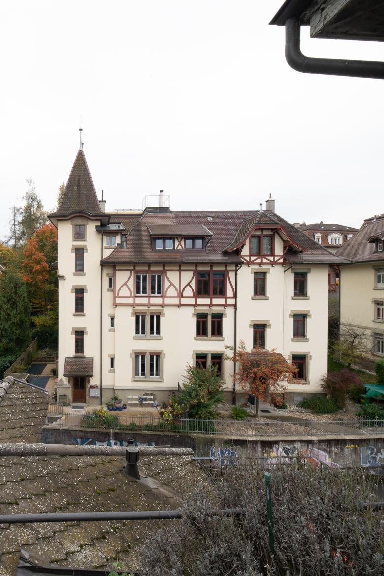 Die in der Zeit des Historismus erbaute und mit gotischen Elementen versehene Liegenschaft ist gut unterhalten und zu grossen Teilen saniert und umgebaut. In Zusammenarbeit mir der städtischen Denkmalpflege und der Bauherrschaft wurde der Wunsch nach einer grösseren Familienwohnung umgesetzt. Durch die Zusammenlegung der beiden Dreizimmerwohnungen im ersten und zweiten Obergeschoss wurde dies gekonnt erreicht.
