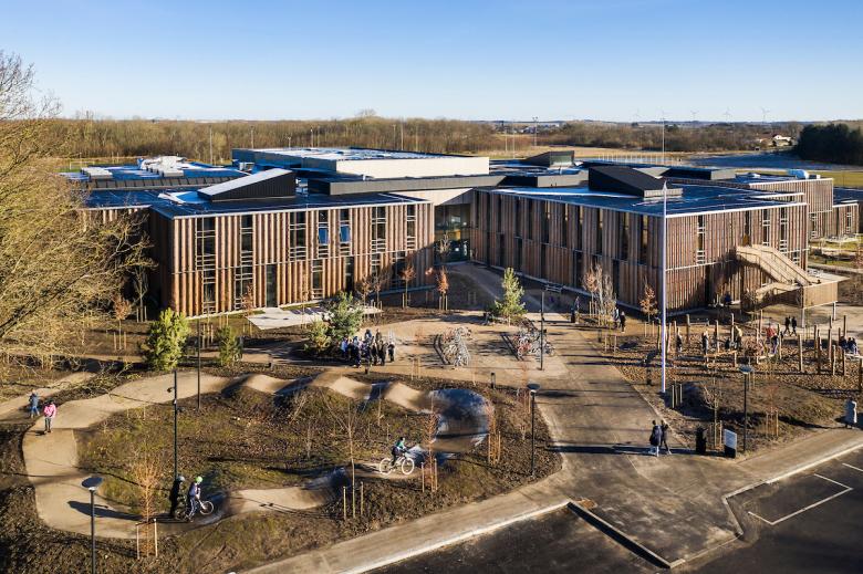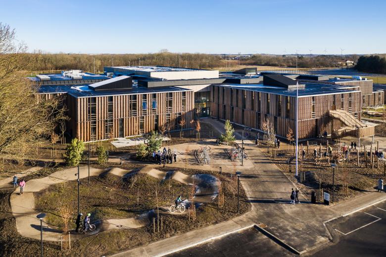 Vrå Public School is a unique project that focuses on children’s play, learning and development and brings together a wide range of offers for all city citizens. Besides class levels and vocational areas, the school thus also includes a youth centre, library, sports hall and an outdoor activity landscape – and all facilities have been designed in close interaction with the scenic surroundings.