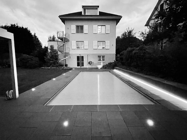 Umgebungsgestaltung mit Schwimmbad und Pergola