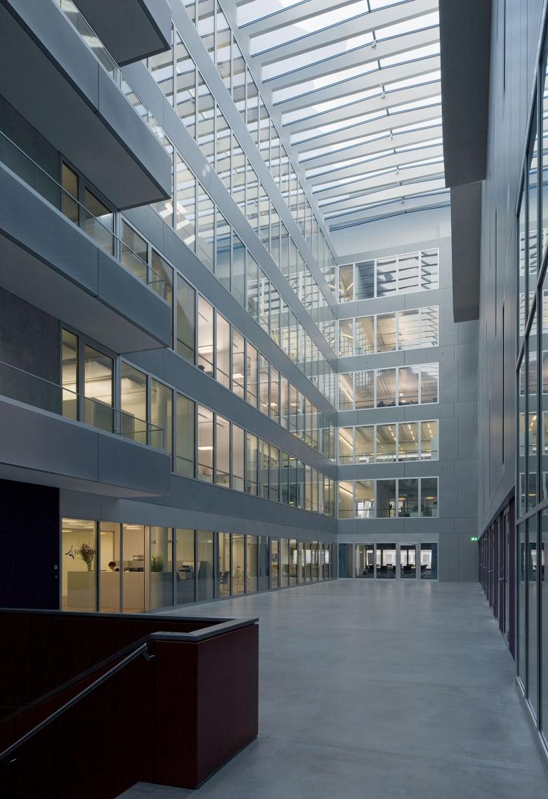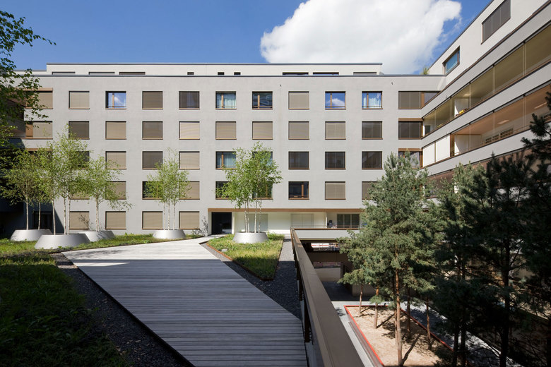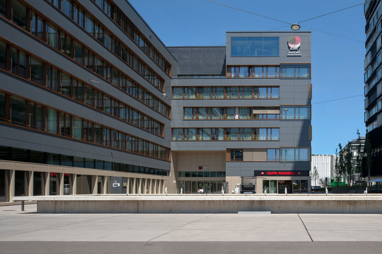 Das Planungsgebiet Hardturm-Areal liegt im äusseren Industriequartier in Zürich West, eines der grossen Entwicklungsgebiete der Stadt Zürich. An zentraler und attraktiver Lage im Limmatraum zeichnet sich das Gebiet schon heute durch eine hervorragende Verkehrserschliessung und eine vielversprechende Nutzungsmischung aus.Ziel ist es, das ehemalige Industriegebiet im Rahmen des laufenden Transformierungsprozesses nachhaltig aufzuwerten. Dazu gehören eine hohe städtebauliche Qualität, ein vielfältiger Nutzungsmix aber auch die notwendige Infrastruktur und öffentliche Freiräume. Die Architekten entwickeln ihr städtebauliches Leitbild aus einer sorgfältigen Analyse des Quartiers und des Charakters eines Industrie-Areals heraus. Dabei werden quartierspezifische Räume, Massstäbe und Typologien notiert, welche innovativ umgesetzt werden. Eine in der Höhe einheitliche Bebauungsstruktur mit Hofbauten sichert die Leseart eines zusammenhängenden Feldes. Ein Hochhaus akzentuiert den östlichen Auftakt zum Areal. Der Stadtsockel von 7 bis 8 Geschossen manifestiert sich aufgelockert in drei gleich hohen Gebäuden. Das Grossvolumen ist im Innern mit je zwei unterschiedlichen Höfen für Ruhe und Geborgenheit strukturiert. Die grosszügigen Innenhöfen der Hofrandstruktur, offen und begrünt für das Wohnen und als lichtdurchflutete Atrien ausgebildet für die Dienstleistung und das Hotel, erlauben unterschiedlichste Lagequalitäten und Nutzungsmöglichkeiten und eignen sich bestens auch für Wohnen. Zwischen dem Hochhaus und dem Baufeld B liegt die städtische Businessplaza. Der Platz bildet ein städtisches Foyer für den Hard Turm Park. Der Hauptzugang für die Dienstleistungsflächen und das Hotel befindet sich an diesem Ort. Das geplante Gebäude zeichnet sich durch eine ausgewogene Nutzungsverteilung aus. Bei einer hohen baulichen Dichte und zum Teil grossen Lärmbelastungen, muss der geforderte Wohnanteil (ca. 50%) untergebracht werden. Mit seiner Nutzungskombination aus 117 Wohnungen, einem Hotel mit 126 Zimmern, Büroflächen und Einzelhandel stellt das Projekt das Baufeld B den bislang in der Immobilienentwicklung seltenen Typus eines „hybriden - Blockes“ dar und ist damit ein interessanter Beitrag zum Thema- Struktur, Körnung und Urbanität in Zürich West. Die differenzierten Aussenräume wie die Businessplaza, die Pfingstweidarkade und der rückwärtige Park binden das Areal an das bestehende Quartier und bieten mit ihren Wohnhöfen hohe Wohn- und Arbeitsqualität.