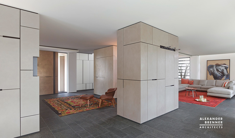 Im Erdgeschoss liegen die gemeinschaftlich genutzten Räume wie Küche, Ess- und Wohnbereich. Das Obergeschoss ist Gästen und vor allem den Eltern vorbehalten. Durch die Nutzung des Quergefälles haben sowohl das Erdgeschoss als auch das darunterliegende Gartengeschoss ebenerdigen Zugang zum Garten. Das Gartengeschoss ist das Reich der Kinder, aber auch eine Sauna und ein Ruheraum finden hier Platz.
