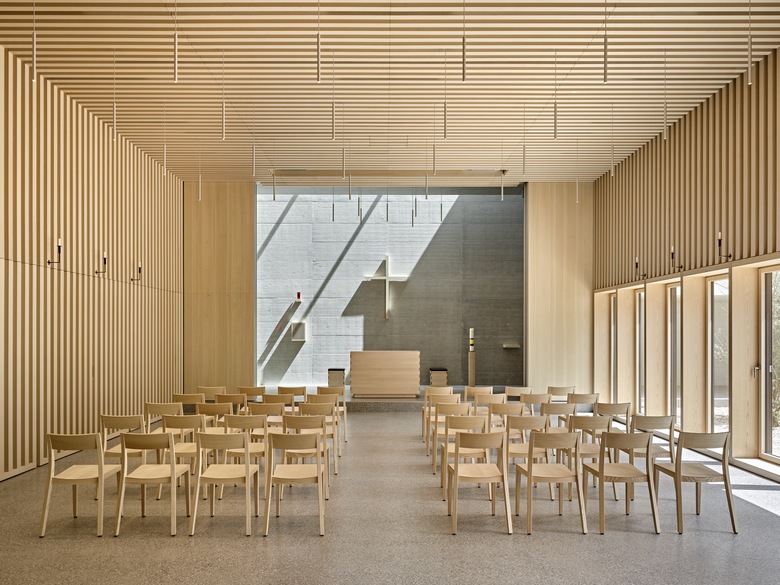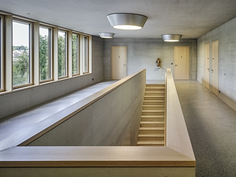 Das Kirchenzentrum Höfli in Ebikon ist ein präsenter eigenständiger Baukörper, der ein räumliches und sinnliches Erlebnis bietet. Das Gebäude verbindet durch seine Lage, Kubatur und Materialisierung typische Elemente wie Kirchturm, Kirchenmauer oder Glockenturm. Sein Herzstück ist die zenital belichtete Kapelle mit dem multifunktionalen Saal. Hochwertige Materialien, wie warmes Eschenholz, Sichtbeton und Terrazzoboden sorgen für Behaglichkeit und Besinnlichkeit. Die sandgestrahlte Fassade mit Schalungsplatten Gewänden in Kalksteinbeton ist fein proportioniert.