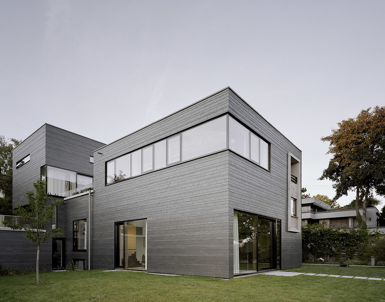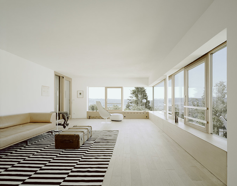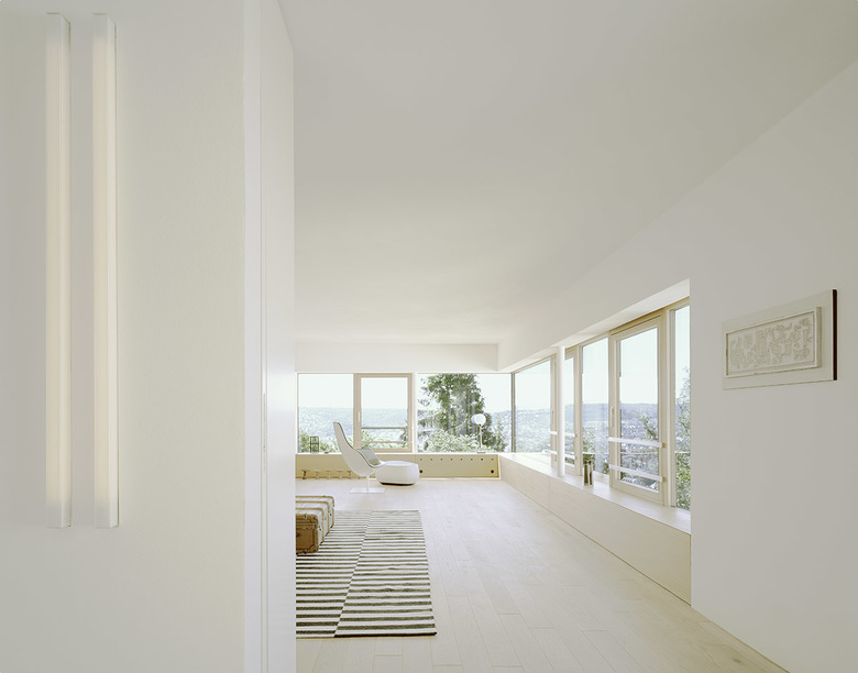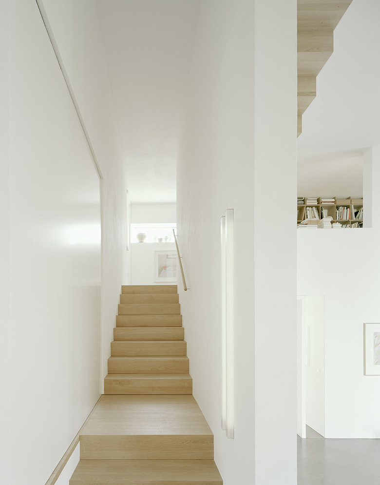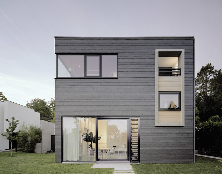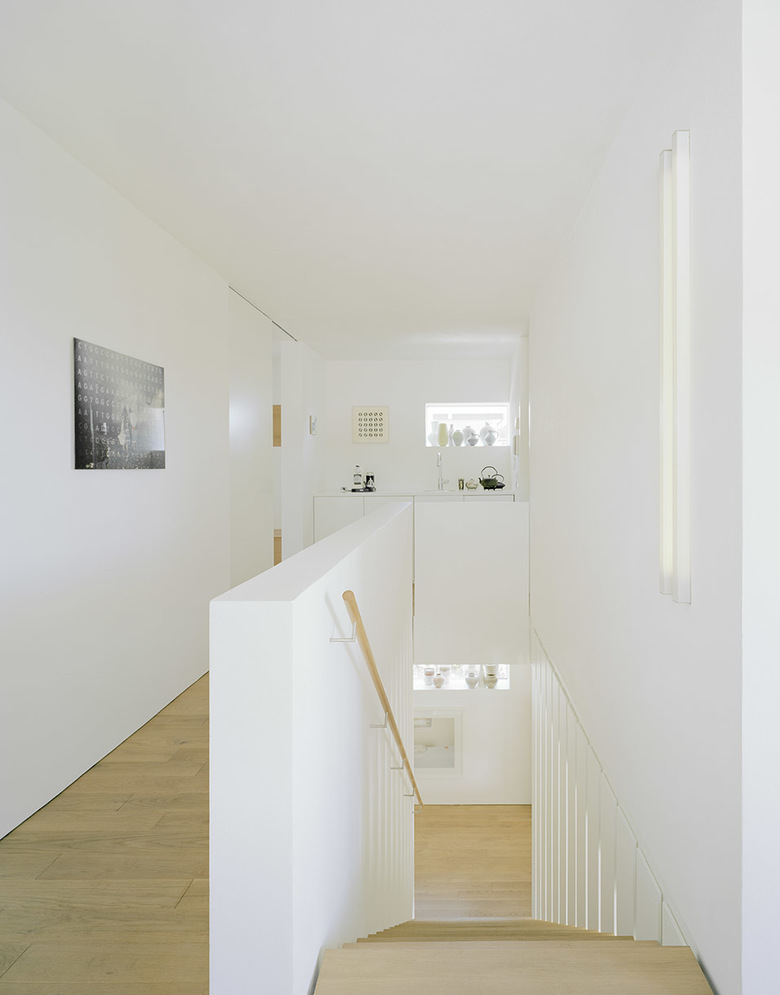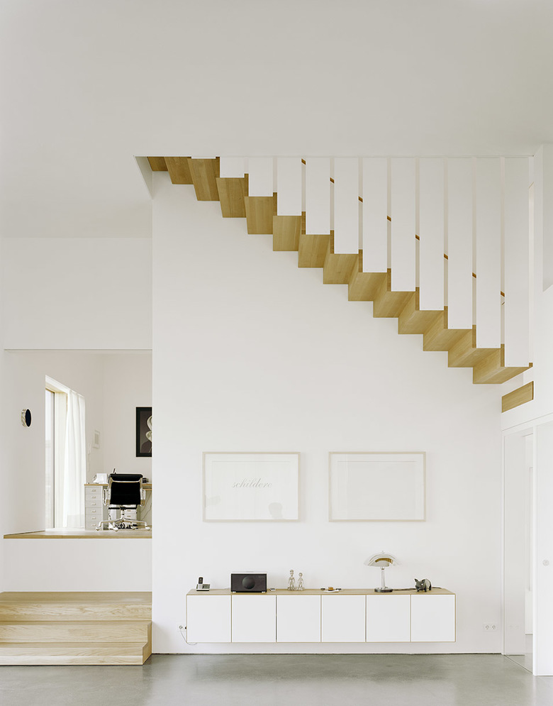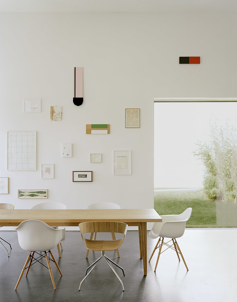 DIE SPRACHE DES MATERIALS – BLACK BOX_WHITE SPACE außen ruppig schwarz, innen weiß und glatt. Ein „Monolith der Ruhe“ inmitten baulicher Aufgeregtheit. Erst im Licht der Sonne gibt der ölhaltige Schiefer auf seiner anthrazit-schwarzen Fläche die Farben frei. „Was schwarz nicht gut ist, kann auch durch die Farbe nicht gut sein“ Anton Stankowski