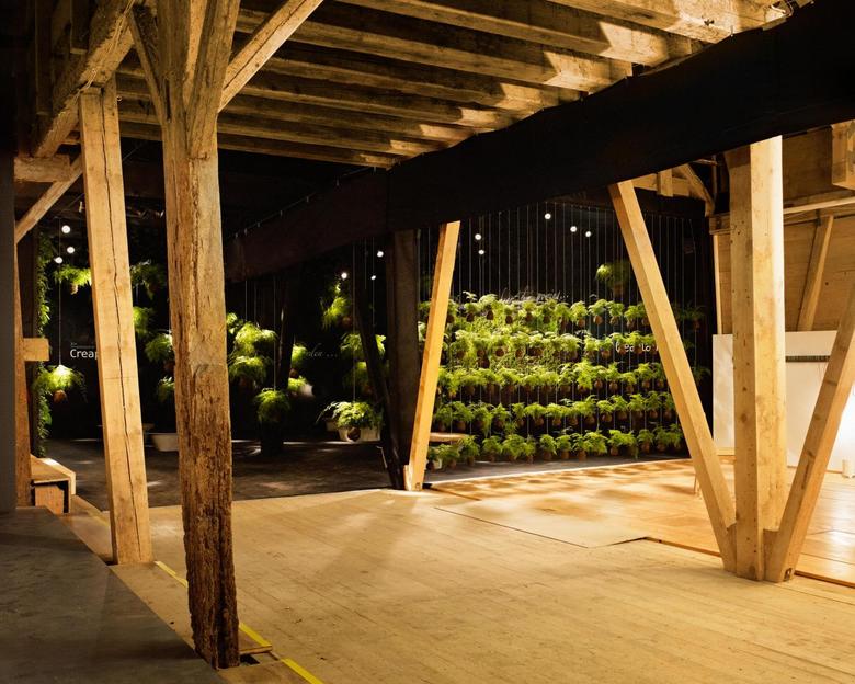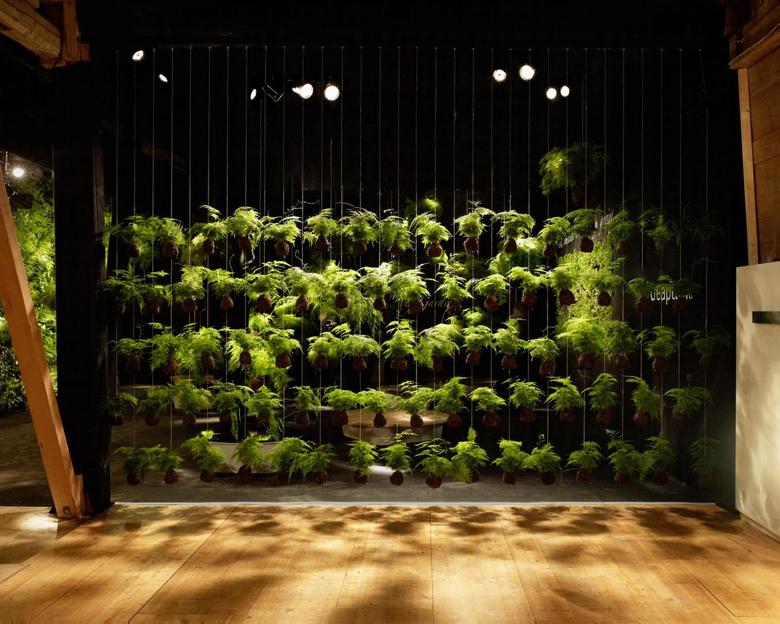 Sie faszinieren, die schwebenden Kugeln, aus denen Pflanzen wachsen. ‹String Garden› nennt sich das Produkt, das auf eine moderne Technik der japanischen Pflanzengestaltung, des ‹Kokedama›, zurückgeht. ‹Kokedama› bedeutet übersetzt Mooskugel, dabei handelt es sich um kleine Pflanzenbälle, aus denen, ganz ohne Topf, Zimmerpflanzen wachsen. In der Ausstellung sind die Hängepflanzen in einem dunklen Raum inszeniert, der auf zwei Seiten von vertikalen Gärten gehalten wird. Sitzrondelle laden zum Verweilen ein. Könnte es sein, dass hie und da ein Tiergeräusch zu vernehmen ist? Auch das gehört mit zum Ausstellungskonzept.