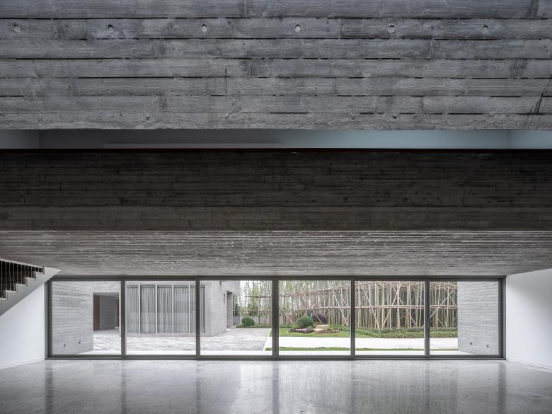 Reinforced concrete is used like clay to mold pure spaces. The textured surface of the exposed concrete poured in timber formwork is intended to avoid abstraction and give expression of tangibility to the spaces.