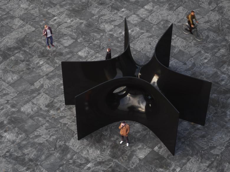 As a bold counterpoint, John Beckmann has created the futuristic Minima XL, a large scale outdoor sculpture employing minimal surface geometry. In mathematics, a minimal surface is a surface that locally minimizes its area. This is equivalent to having zero mean curvature. Physical models of area-minimizing minimal surfaces can be made by dipping a wire frame into a soap solution, forming a soap film, which is a minimal surface whose boundary is the wire frame. The origins of minimal surface theory date back to 1762.