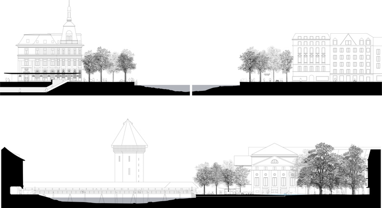 Die Absicht ist es, für Bahnhofstrasse und Theaterplatz eine neue Gestaltungssprache zu etablieren. Durch einfache und präzise freiräumliche Setzung werden grosszügige, räumlich spannungsvolle und gut nutzbare Freiräume geschaffen. In das Prinzip der Abfolge von besetzten und offenen Bereichen sind auch die ans Bearbeitungsgebiet angrenzenden Freiräume eingebunden. Dabei kommt eine neue, zeitgemässe Gestaltungssprache zum Einsatz, welche die unterschiedlichen Bereiche zusammenhält und mit den angrenzenden Freiräumen auf den Ebenen der Nutzung, der Raumbildung und der Materialisierung interagiert und sie bereichert.