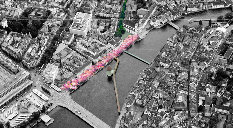 Die städtebauliche Betrachtung des Ortes und seiner Entwicklungsgeschichte zeigen das Bearbeitungsgebiet Bahnhofstrasse, Theaterplatz und Hirschengraben als einen zusammenhängenden Freiraum. In dieser Fuge zwischen den historischen Stadtteilen soll ein eigenständiger Freiraum mit zeitgemässer Gestaltungssprache geschaffen werden.