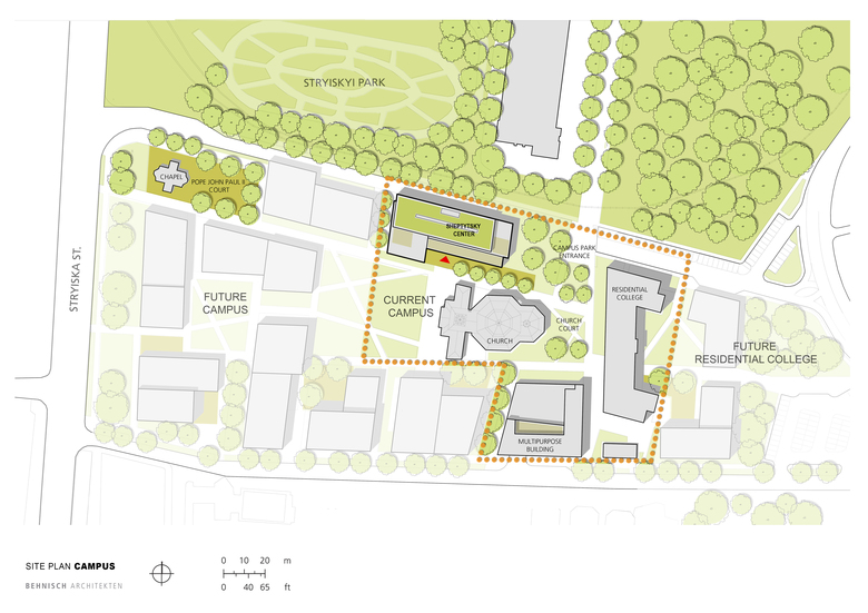 The university is currently building a new campus. At the heart of this campus is the Metropolitan Sheptytsky Information Research Center, the first building of its type built in post-Soviet Ukraine. It includes a library for the humanities, academic and research spaces, and public spaces that serve the community.