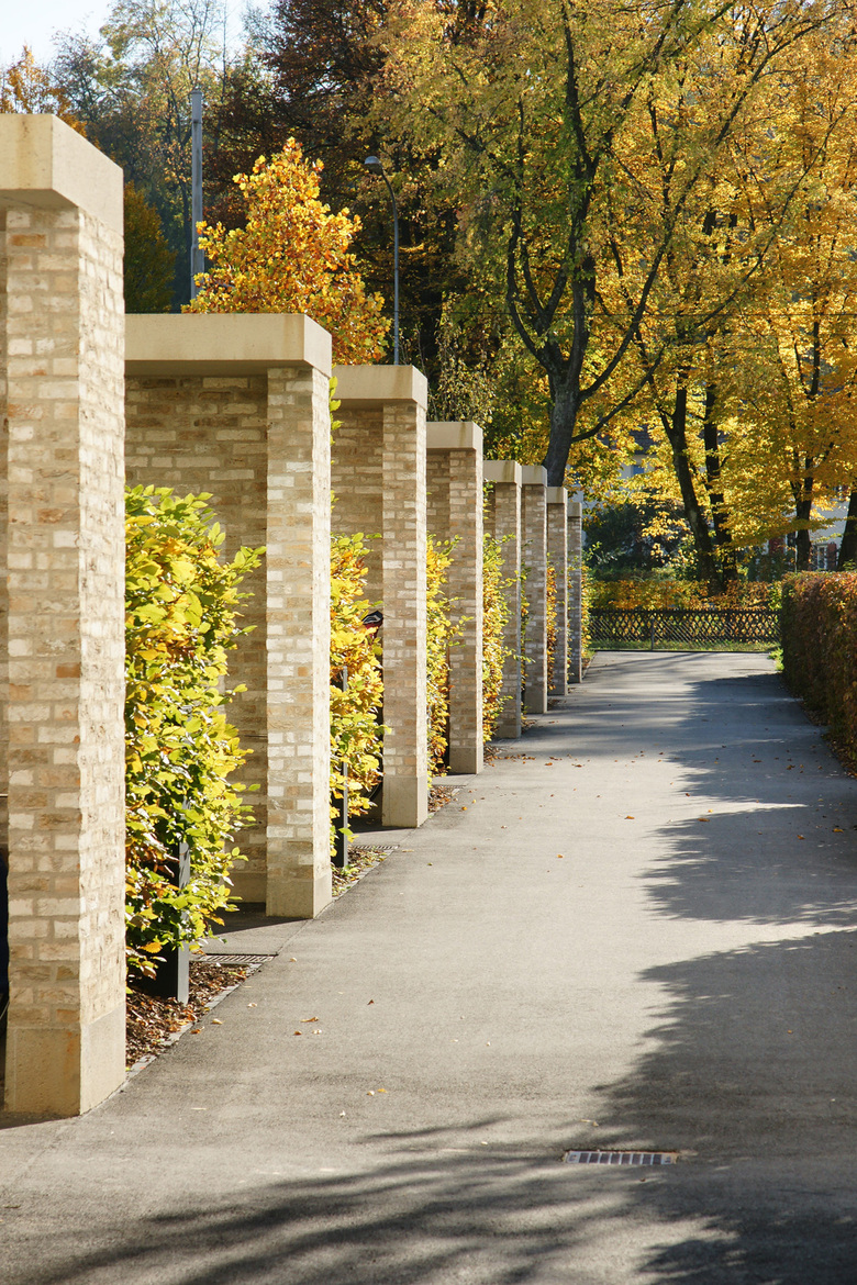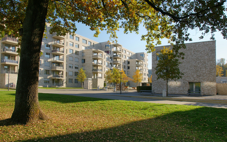Da Hauszugänge und öffentliche Erdgeschossnutzungen bewusst auf das Zentrum der Siedlung ausgerichtet sind, kann zwischen den grossen Baukörpern gemeinschaftliches Leben entstehen. Die Qualität der Freiräume besteht in der Vielfältigkeit. Die Siedlung weist parkartige Bereiche sowie kleinteilige Gartenwelten auf, die sich in der Ausrichtung an den bestehenden Strukturen orientiert. Somit wird trotz Verdichtung ein fliessender Freiraum im Areal und über den Siedlungsperimeter hinaus erreicht.
