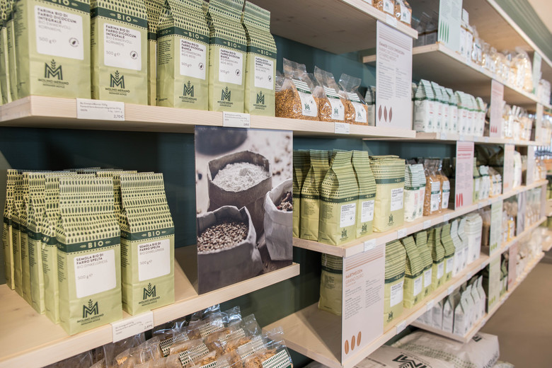 Umbau und Interior Design des neuen Detailverkaufsladens der Meraner Mühle.