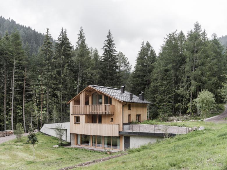 Planung eines baubiologischen Massivholz-Einfamilienhaus am Berg.