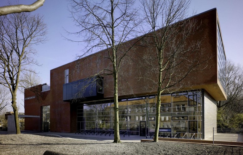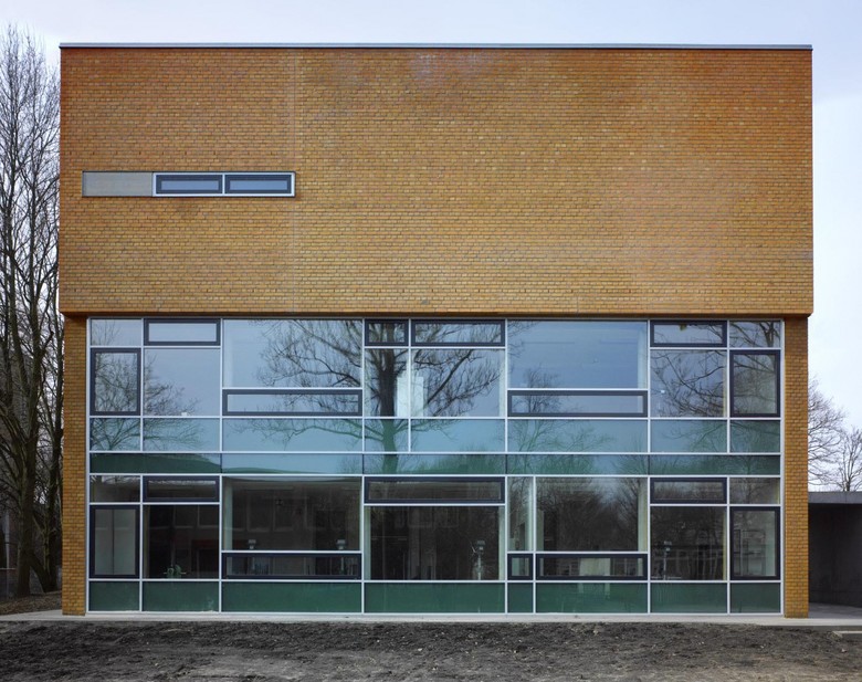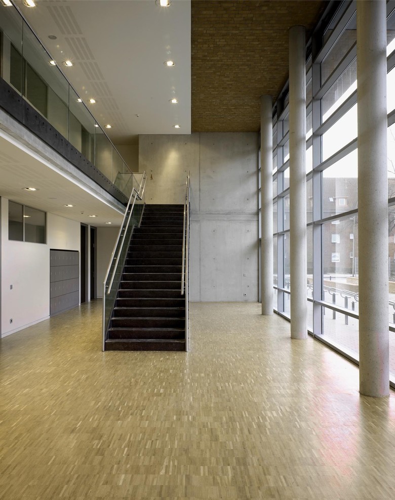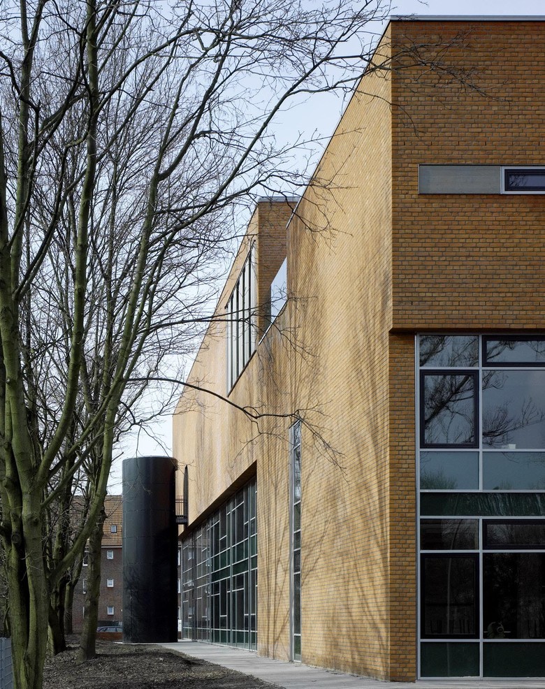 Die Gesamtschule Wilhelmsburg ist eine Ganztagsschule mit besonderen Förderaufgaben. Der Neubau der Schule ordnet sich in die vorhandene Struktur der Zeilenbebauung ein, wird aber gleichzeitig durch seine architektonische Prägnanz zu einem städtebaulichen Zeichen. Durch die ungewöhnliche Anordnung der Sportbereiche auf den Klassenräumen entsteht ein kompakter längs gestreckter Baukörper mit großzügigen Freiflächen. Durch die Integration der Sporthalle in den Baukörper erhält dieser eine ungewöhnliche Maßstäblichkeit, die ihm als skulpturale Einheit eine fast monumentale Kraft und Ausstrahlung verleiht.
