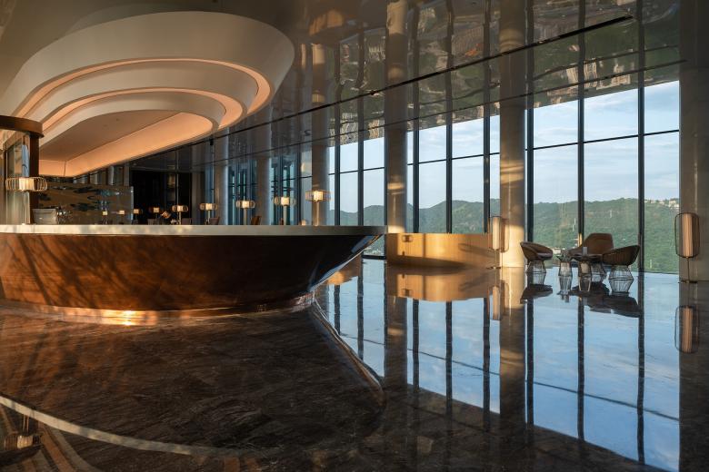 CL3 Architects is the interior design team of the hotel's main areas. Besides the hotel, CL3 together with Safdie Architects designed the residential lobby and common area for towers T1 Jialing Two, T2 Jialing One, T3N One Altitude, T5 Yangtze One, T6 Yangtze Two, as well as the residential clubhouse inside the crystal sky bridge on level 42.
