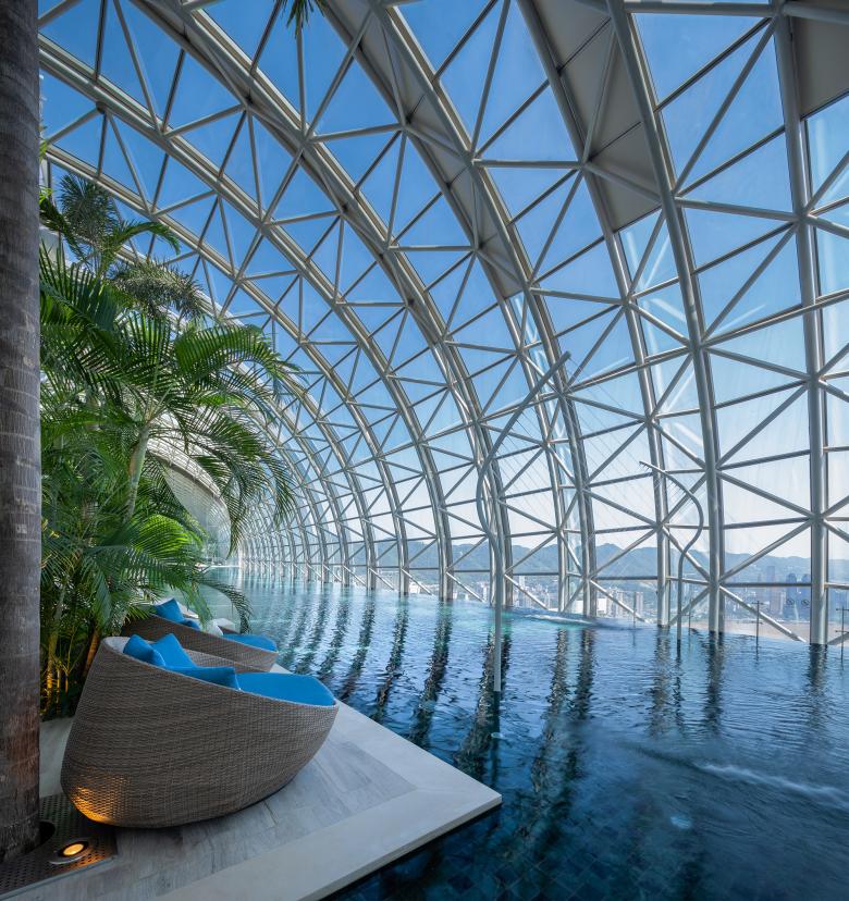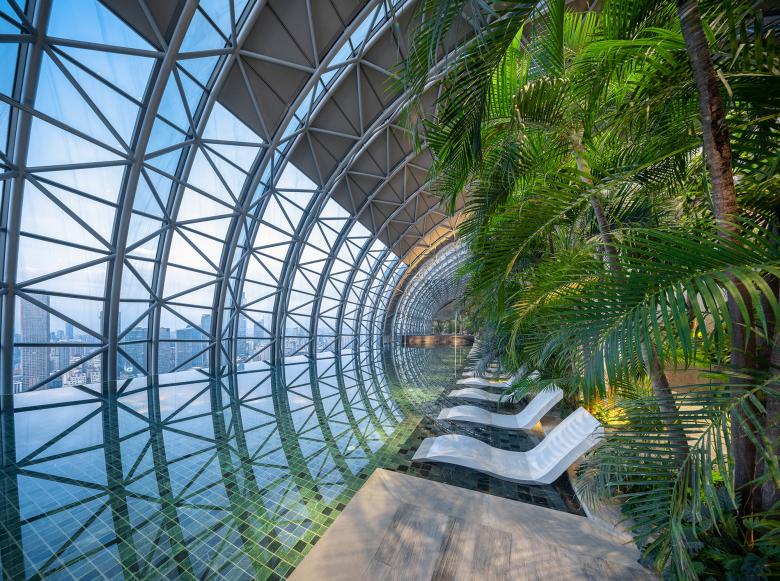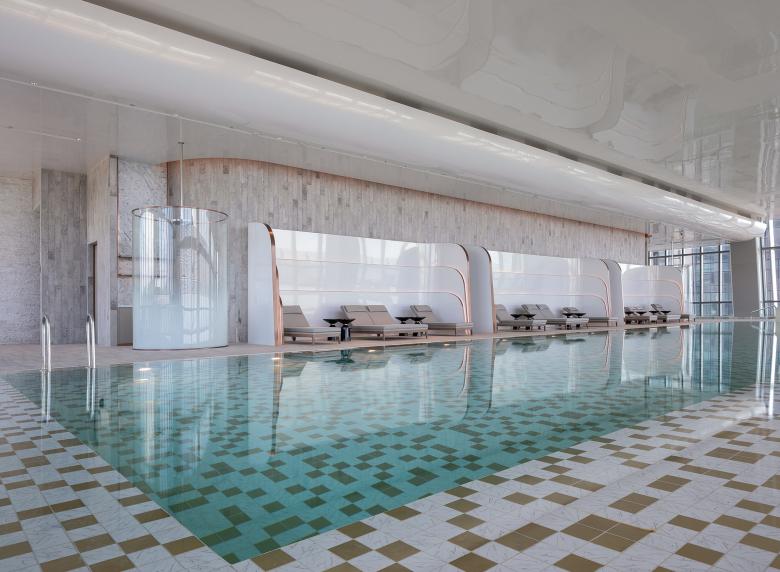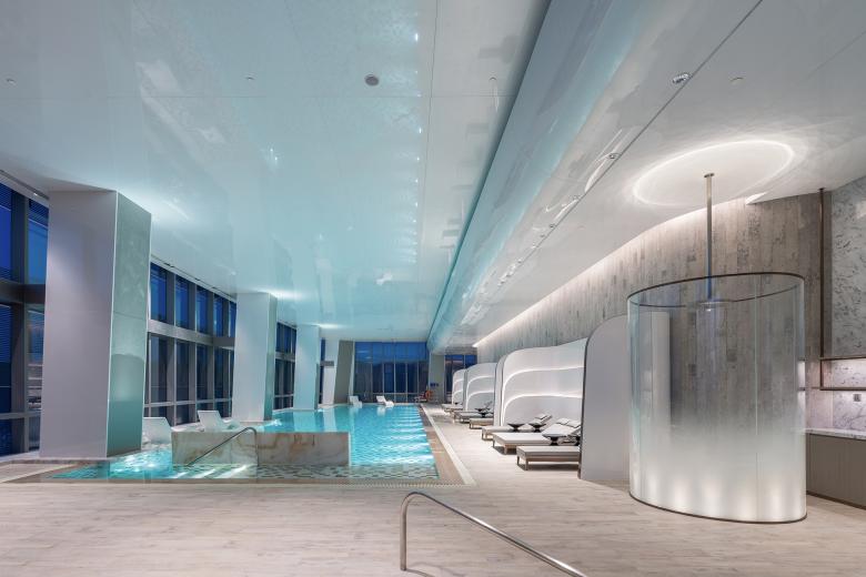 CL3 together with Safdie Architects designed the residential clubhouse inside the crystal sky bridge on level 42, which boast the most dramatic indoor swimming pool, gym, spa and private function rooms.