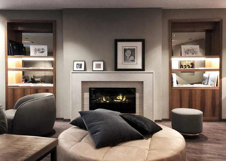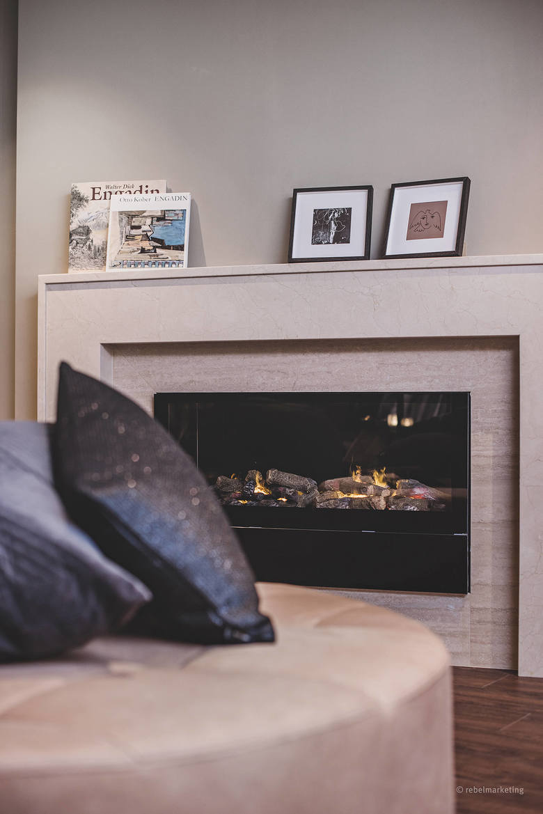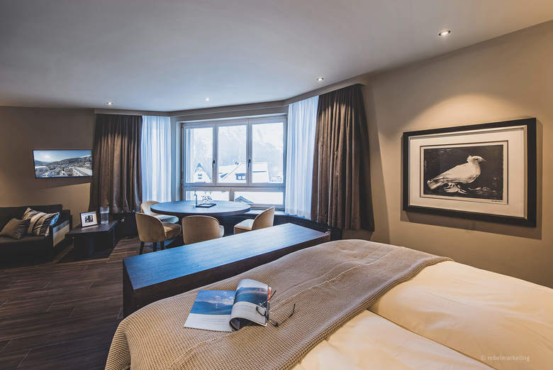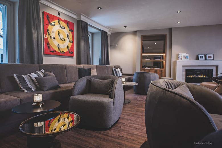 Der Empfang- und Lobbybereich ist für eine bessere Aufenthaltsqualität komplett umgestaltet. Dieser Raum besticht durch seinen eleganten Bibliotheks-Charakter mit einem Naturstein-Cheminée - für eine warme gemütliche Atmosphäre in der Wintersaison. Im hinteren Bereich befindet sich der neue Meetingraum und Prefunction.