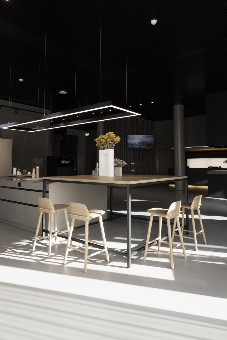 Ein weiteres neues Zuhause der Firma V-Zug heisst Besucher seit November 2022 willkommen. Auf rund 785 qm erstrahlt das Headquarter der Firma mit Sitz in Zug im definierten Design. Die Innenarchitektur, abgestimmt auf die freizügige Fläche, bildet neue Zonen und neue Räume. Eine „Kitchen-Journey“ ergänzt das Markenerlebnis. Der Kunde durchläuft mehreren Stationen, indenen er die Möglichkeiten und die Vielfältigkeit der Produkte aktiv kennenlernt. Ebenfalls neu ist die Zone „Young Kitchen“. Helle Farben in Kombination mit Eichenholz verschmelzen räumlich mit der klaren Formsprache von V-Zug. Mehrere Showküchen, ein Weinraum, der gemütliche Textile Care Raum bilden nicht nur den Weg zum hauseigenen Museum, sonden ergänzen das Gebäude in allen Facetten.