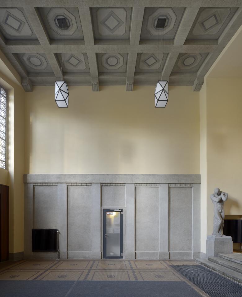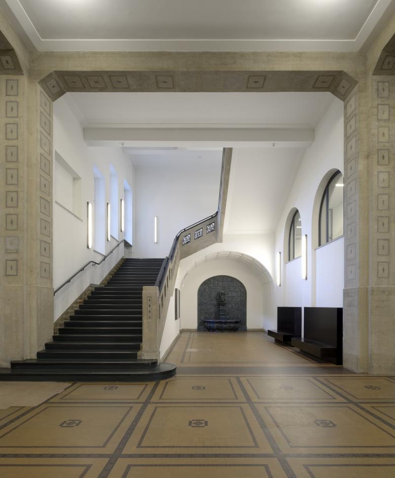Das denkmalgeschützte Gebäude, 1911-1914 von Fritz Schumacher errichtet, ist Teil des Campus Berliner Tor, der Hauptcampus der Hochschule für Angewandte Wissenschaften. Im ersten Weltkrieg dient das Gebäude als Reservelazarett, im zweiten Weltkrieg brennt das Gebäude während der Luftangriffe im Juni 1943 vollständig aus, Dach und Obergeschosse sind zerstört. Unmittelbar nach Kriegsende beginnt der Wiederaufbau des Hauptgebäudes. Bis in die 1970er Jahre ist der Schumacher-Bau die zentrale Adresse für die Ingenieurbaukunst in Hamburg. Heute befindet sich dort das Department Maschinenbau und Produktion der HAW Hamburg. Seit 2015 ist DFZ mit den Sanierungs- und Instandsetzungsarbeiten des fünfgeschossigen Bestandsgebäudes betraut. Zu den Maßnahmen gehören u.a. die ganzheitliche Sicherheitssanierung, die Feuchtigkeitssanierung, Dach- und Fassadensanierung, zahlreiche Rückbaumaßnahmen mit brandschutzgerechtem Wiederaufbau sowie die Möblierung aller öffentlichen Bereiche. Die Besonderheit des Baukörpers zeigt sich in den verschieden farbigen Steinputzflächen, die 2003 bei einer restauratorischen Befunduntersuchung hinter zahlreichen Farbanstrichen zum Vorschein kommen. Im Zuge der Betonsanierung werden die Putzdecken, -wände und Pfeiler mit ihren ursprünglichen Ornamenten freigelegt und in aufwendigen Retuschearbeiten wieder aufgearbeitet. Der zuletzt fertiggestellte Bauabschnitt umfasst neben der Betonsanierung das Ausarbeiten eines Beleuchtungskonzepts für die öffentlichen Bereiche. Angelehnt an den historischen Kontext wird eine Leuchtserie entwickelt, deren Design die Geometrie der Ornamente aus Wand und Decke aufgreift und in dezent moderner Form interpretiert. Alle Maßnahmen werden in aufeinander folgenden Bauabschnitten im laufenden Betrieb in enger Absprache mit dem Denkmalschutzamt realisiert.