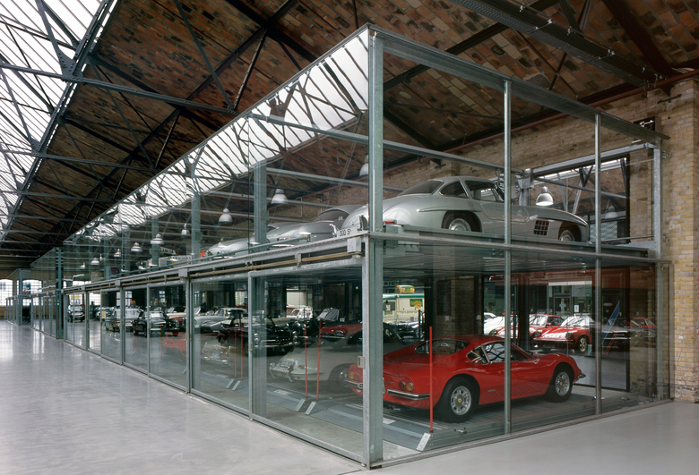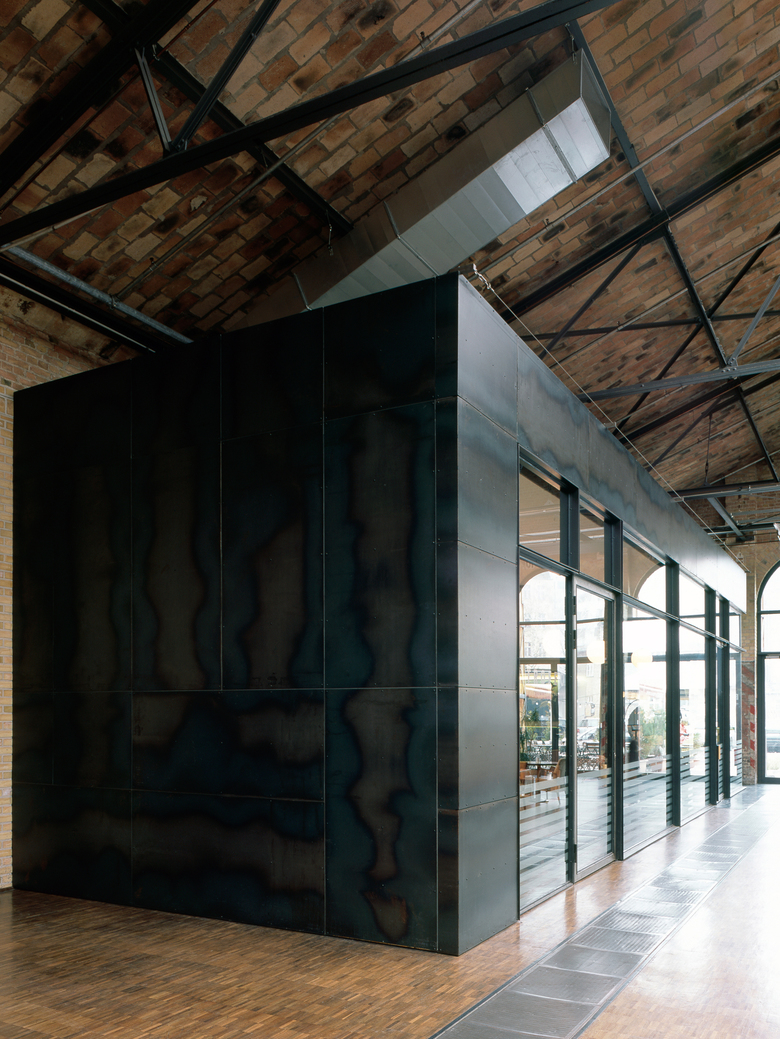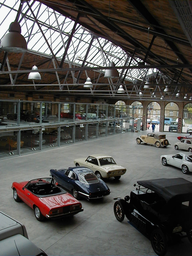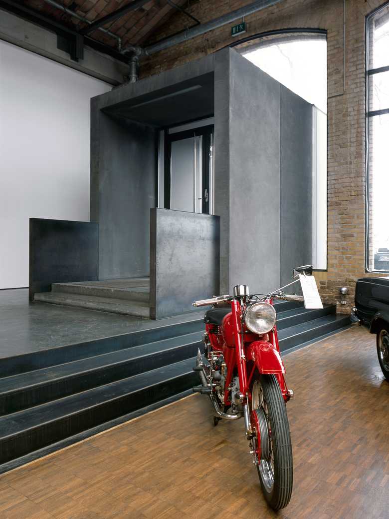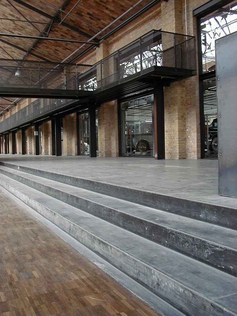 Die Hallen des denkmalgeschützten ehemaligen Straßenbahndepots werden aufwendig saniert und zum Meilenwerk umgenutzt. Neben einer großzügigen Ausstellungs- und Eventfläche entstehen Oldtimer-Werkstätten und Verkaufsflächen für den Handel. Leitgedanke bei der Umnutzung der vier Hallenschiffe ist der weitestgehende Erhalt der denkmalgeschützten Gebäudesubstanz. Durch die aufwendige Sanierung und das behutsame Hinzufügen von eigenständigen Stahl- und Glaseinbauten bleibt die beeindruckende großmaßstäbliche Hallenkonstruktion vollständig erlebbar. Die neuen Einbauten folgen dem “Haus im Haus”-Prinzip und fügen sich in ihrer bewusst reduzierten Formensprache optimal in die bestehende Struktur ein. Um den rauen Charakter der Hallen zu stärken sind die Metallkonstruktionen der Einbauten ausschließlich aus Walzblech oder Walzstahl. Der Baukörper erfährt so in besonderem Maße sensuelle und haptische Qualitäten. Stege, Brücken und Treppen aus Stahlelementen geben dem Besucher besondere Einblicke und unterstützen gleichzeitig den industriellen Charakter der Hallen.