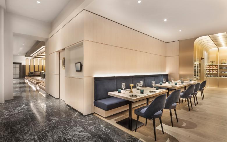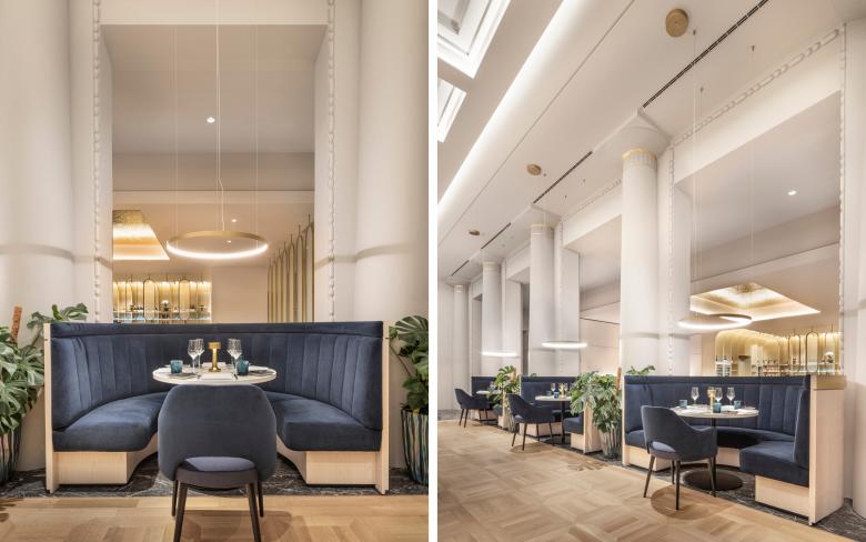 Die Neugestaltung fügt sich in den bauhistorischen Gesamtkontext, interpretiert die Identität Baden-Badens analog zur badisch–regionalen Küche auf moderne Weise und nimmt gestalterischen Bezug zum umgebenden Schwarzwald. Das Wechselspiel aus modernen Elementen, spannender Lichtgestaltung und historischem Bestand strahlt Gemütlichkeit, Moderne und Exklusivität aus und resultiert in einer einladenden Raumkomposition.